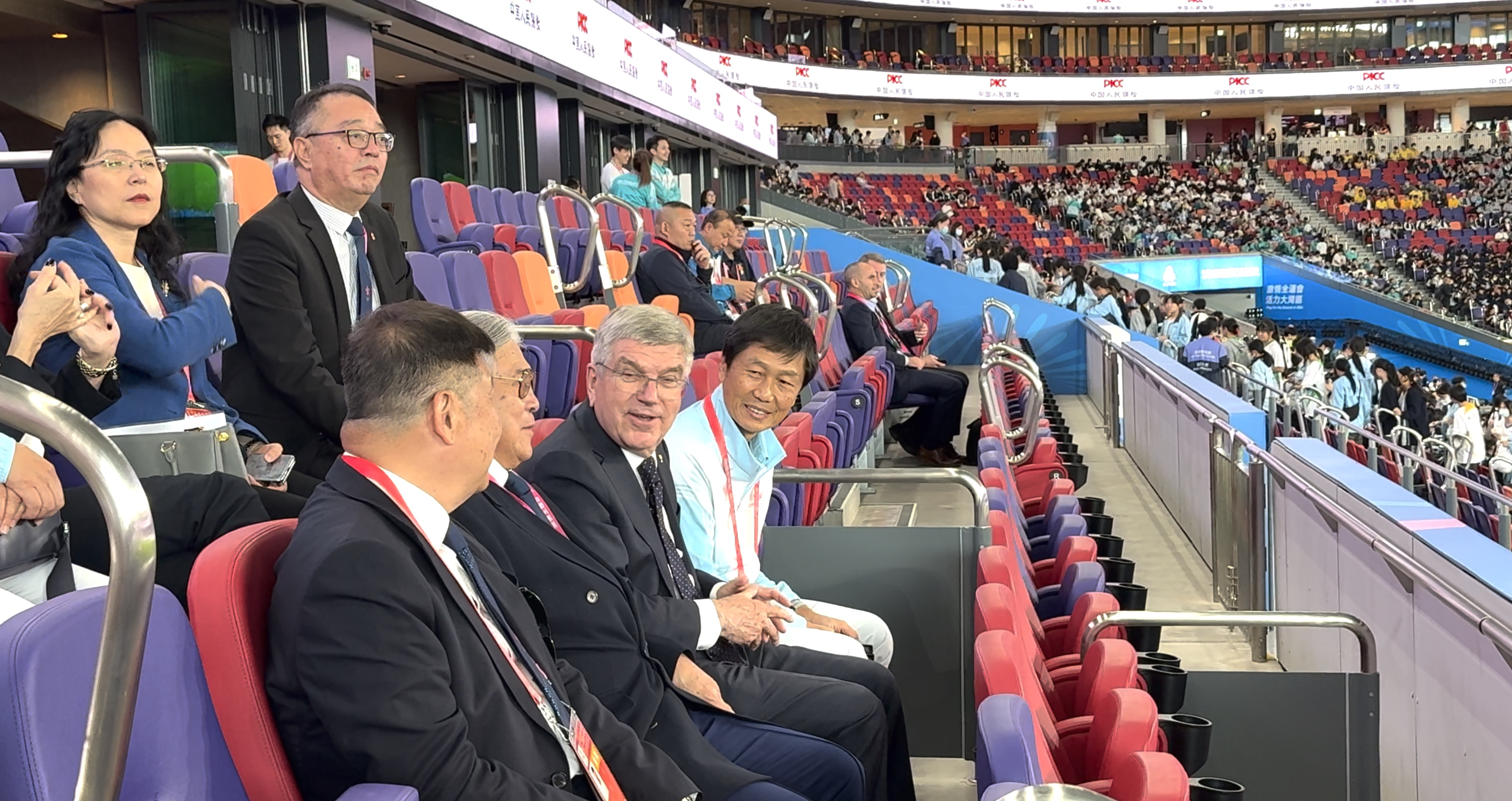 國際奧委會終身名譽主席巴赫下午到訪啟德主場館,觀賞十五運會7人欖球賽事。他表示,香港和大灣區具備申辦奧運所需的一切條件,完全可能成為重要的申辦奧運地點。