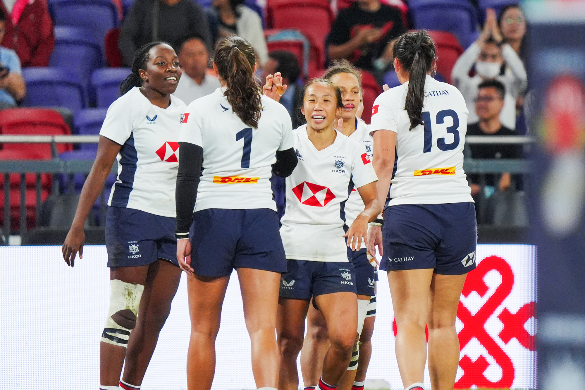 港隊於女子七欖名次賽以24比7大勝上海,取得賽事第5名。(新華社)