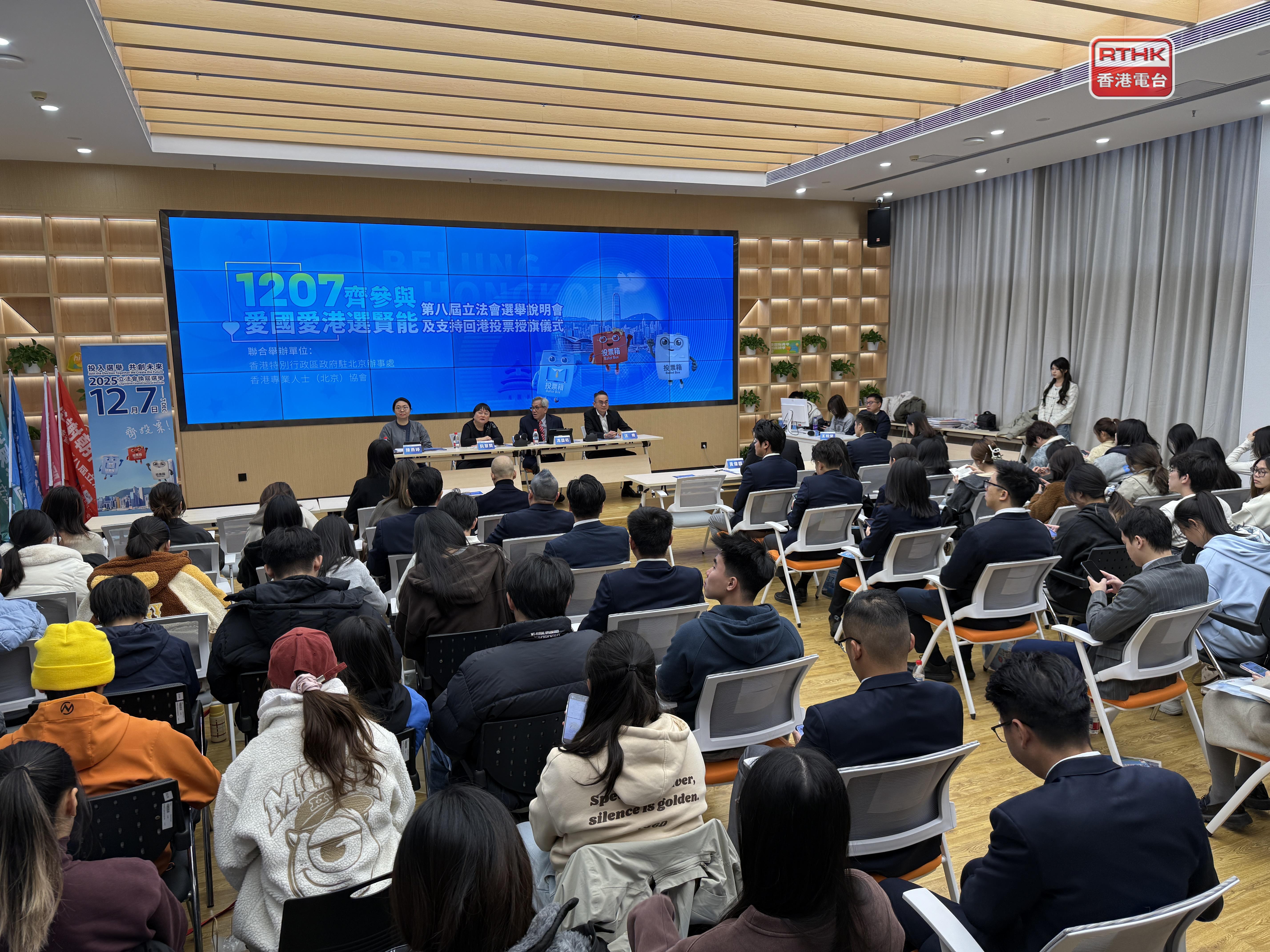 駐京辦聯同香港專業人士(北京)協會舉行第八屆立法會選舉說明會及支持回港投票授旗儀式。駐京辦在活動上介紹今屆立法會選舉情況,包括設立鄰近邊境投票站等投票日安排。