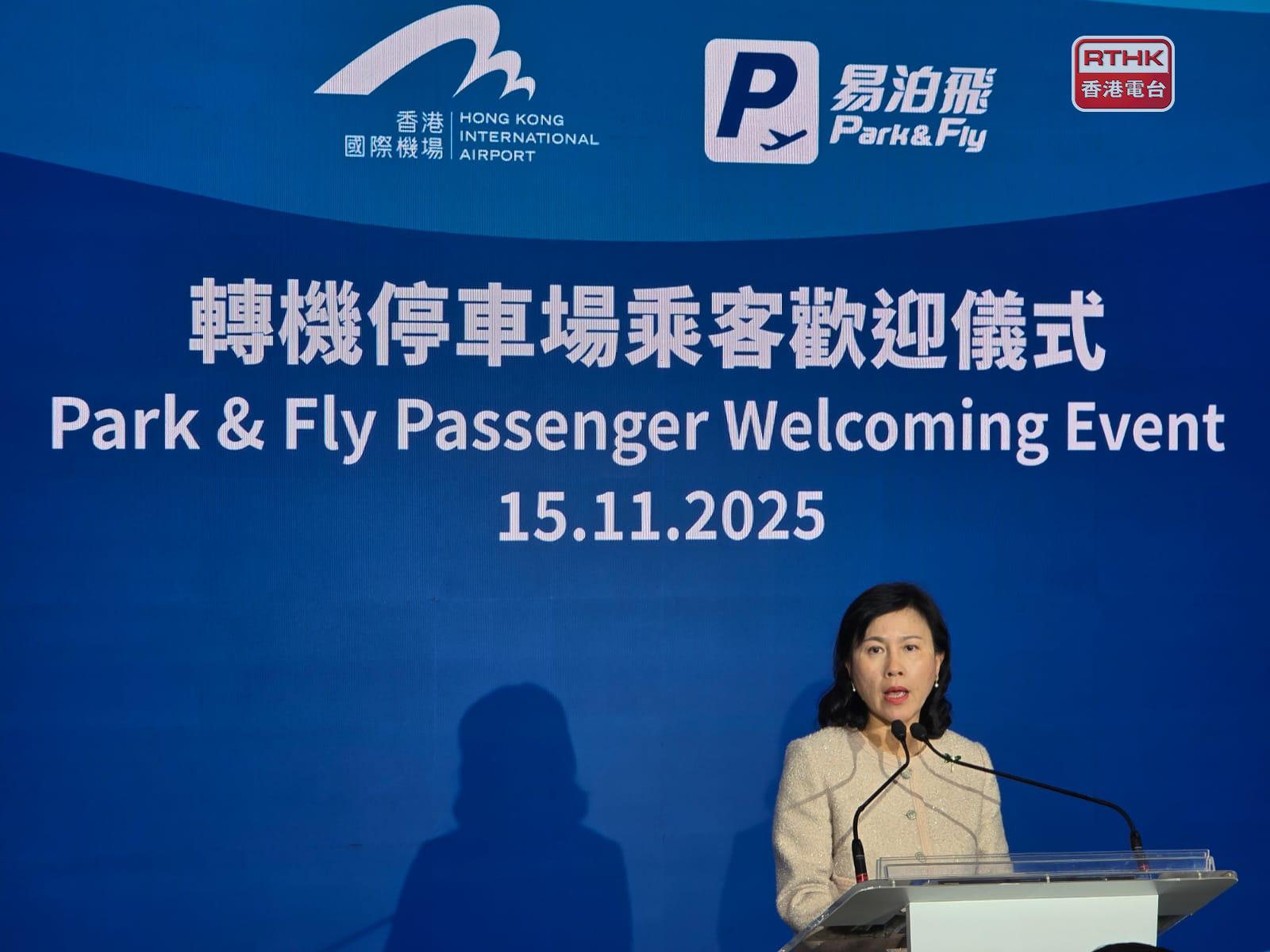出席歡迎儀式的運輸及物流局局長陳美寶表示,「轉機停車場」作為粵車南下政策落實的首個成果,能讓旅客自駕遊,無縫透過「電子飛氈」的方式停泊車輛,再到機場客運大樓接駁到200個航點。她表示,「轉機停車場」共有1800個泊車位,至今已有超過3千人開戶登記,未來1個月已有280人預訂泊位,形容情況相當理想,機管局會與航空公司推出聯乘產品,方便旅客。