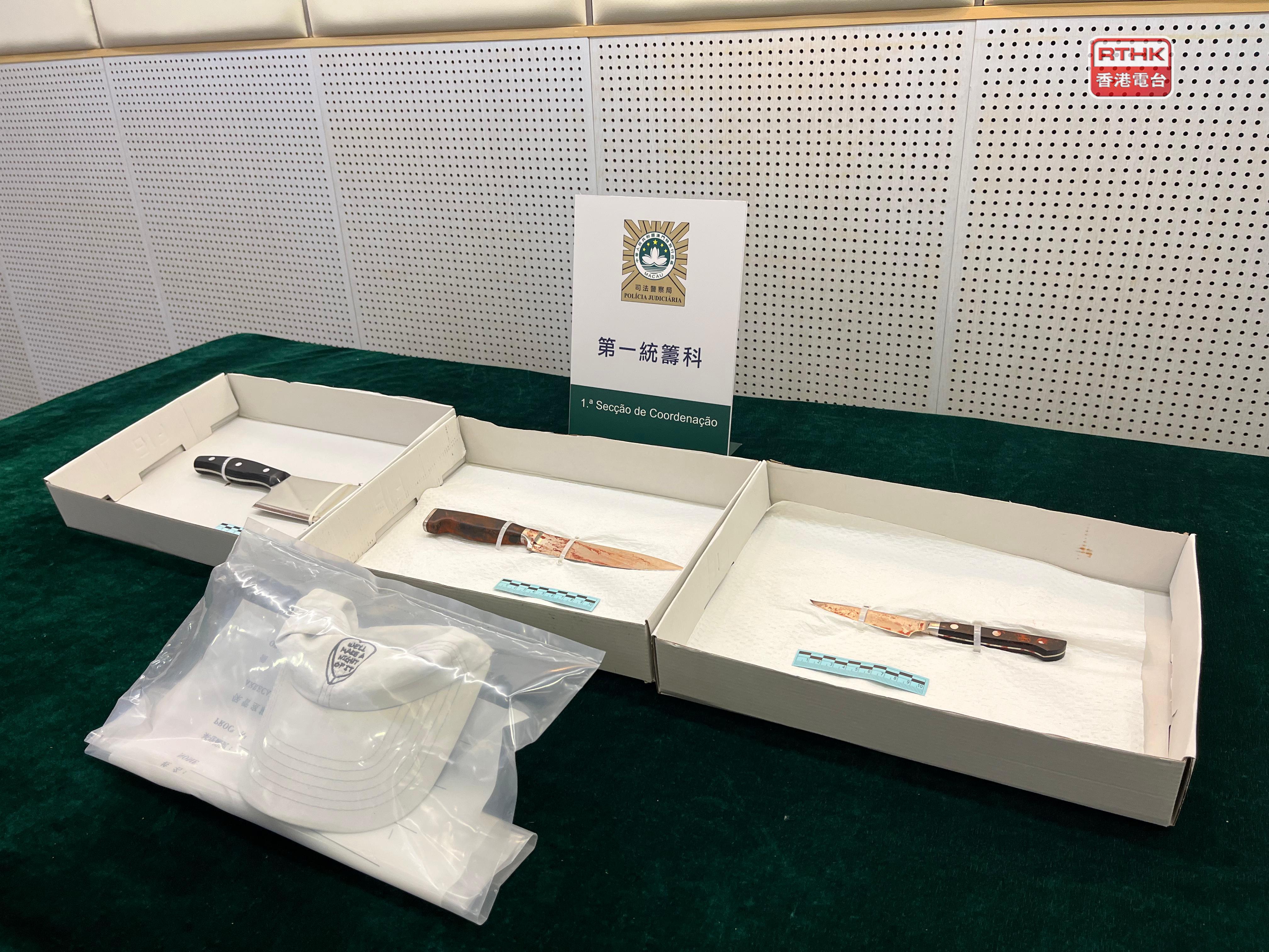 疑犯留院接受觀察治療一晚後,昨日被帶返警署調查,表示因感情問題,在房內曾發生打鬥。司警連同在酒店房間檢獲的兩把刀及證物等,將疑犯移交檢察院偵訊。