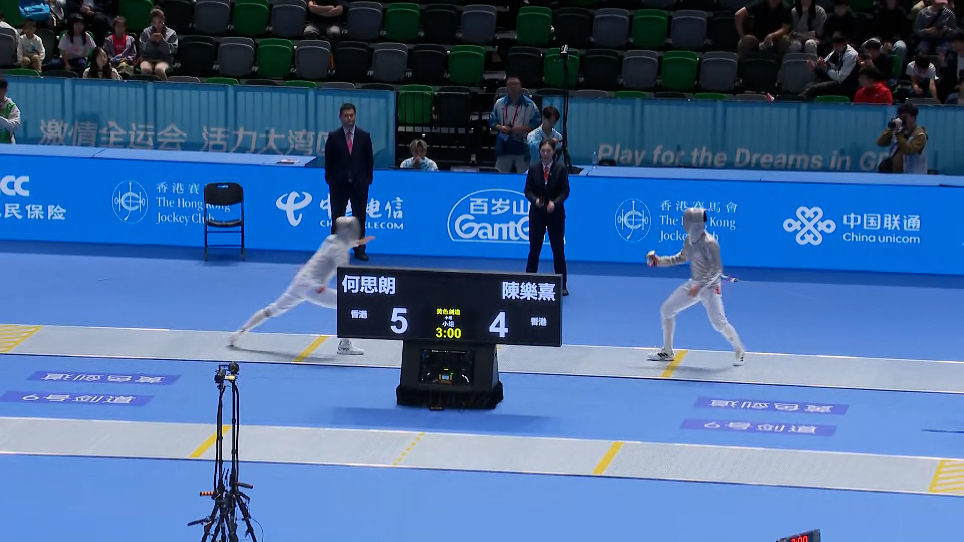 賽事在啟德體藝館舉行,何思朗在32強對隊友陳樂熹,領先13:7之後,陳樂熹連取5分,追至一分差距,最終何思朗贏15:12,晉級16強,將會對安徽代表吳嘉聖。