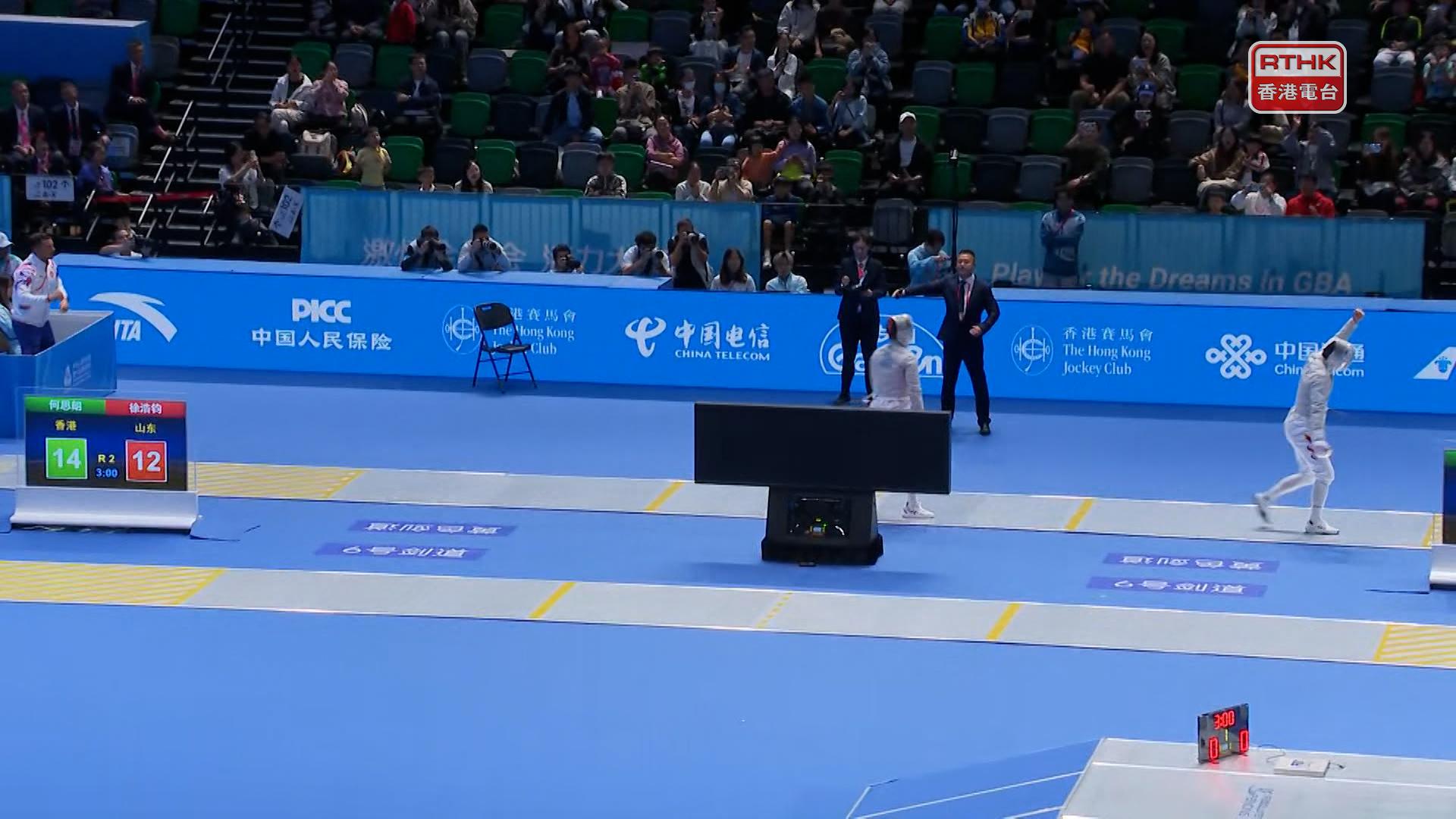香港劍擊代表何思朗,在十五運會男子佩劍個人賽8強,15:13擊敗山東代表徐浩鈞,晉身準決賽,將與廣東代表許英明爭入決賽。