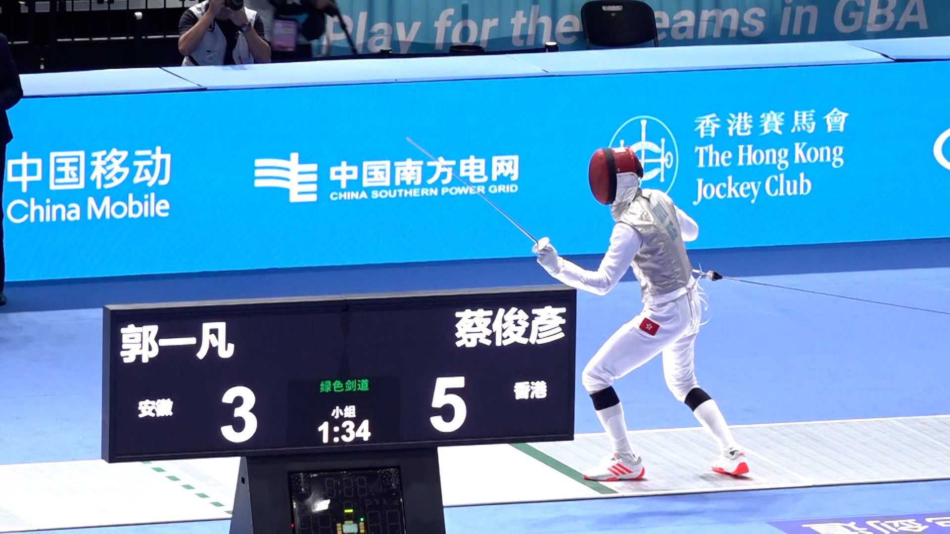 港隊劍擊代表蔡俊彥在十五運會男子花劍個人賽八強出局。他在賽後表示,未有因為這場失利感到不快,認為接下來在團體賽很有機會得獎牌,期望隊友張家朗在個人賽奪金,令港隊有較好的團體賽排位,希望屆時可以取得獎牌。