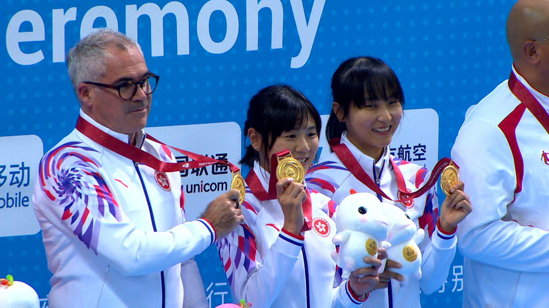 十五運會場地自行車,港隊代表李思穎及梁穎儀於女子麥迪遜賽奪得金牌;港隊今天另一面獎牌,來自鐵人三項混合接力,韋祺、ROBIN、彭詩雅及奧斯卡奪得銀牌。