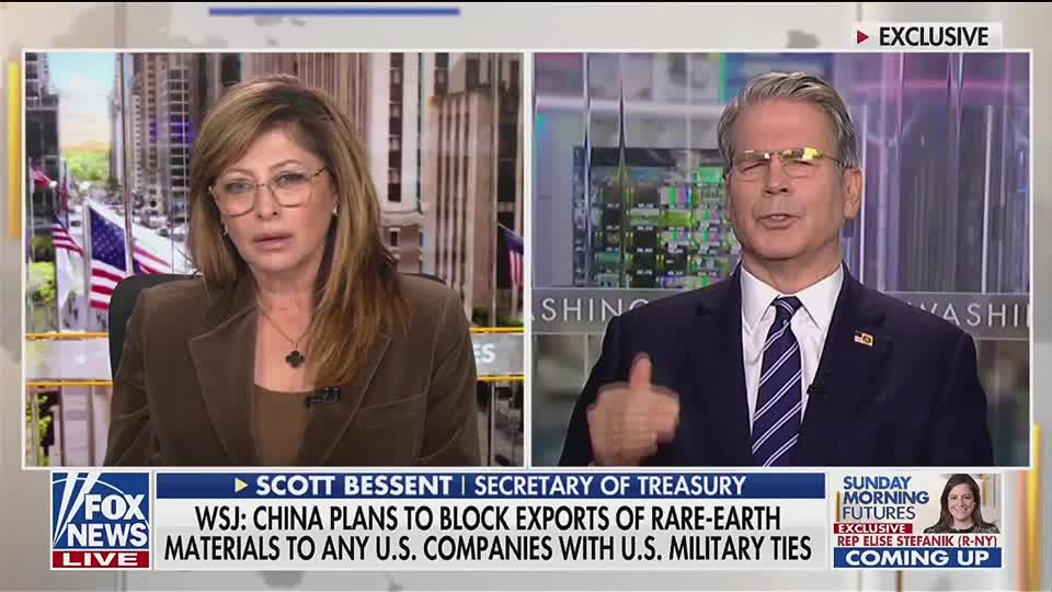 另外,貝森特也駁斥《華爾街日報》一篇報道,報道稱中國官員計劃限制與軍方有關的美國公司獲取稀土資源。他堅稱,中美一旦敲定協議,稀土將像4月前那樣自由流通。但貝森特同時警告,如果北京方面反悔,美國有很多手段可以進行報復。