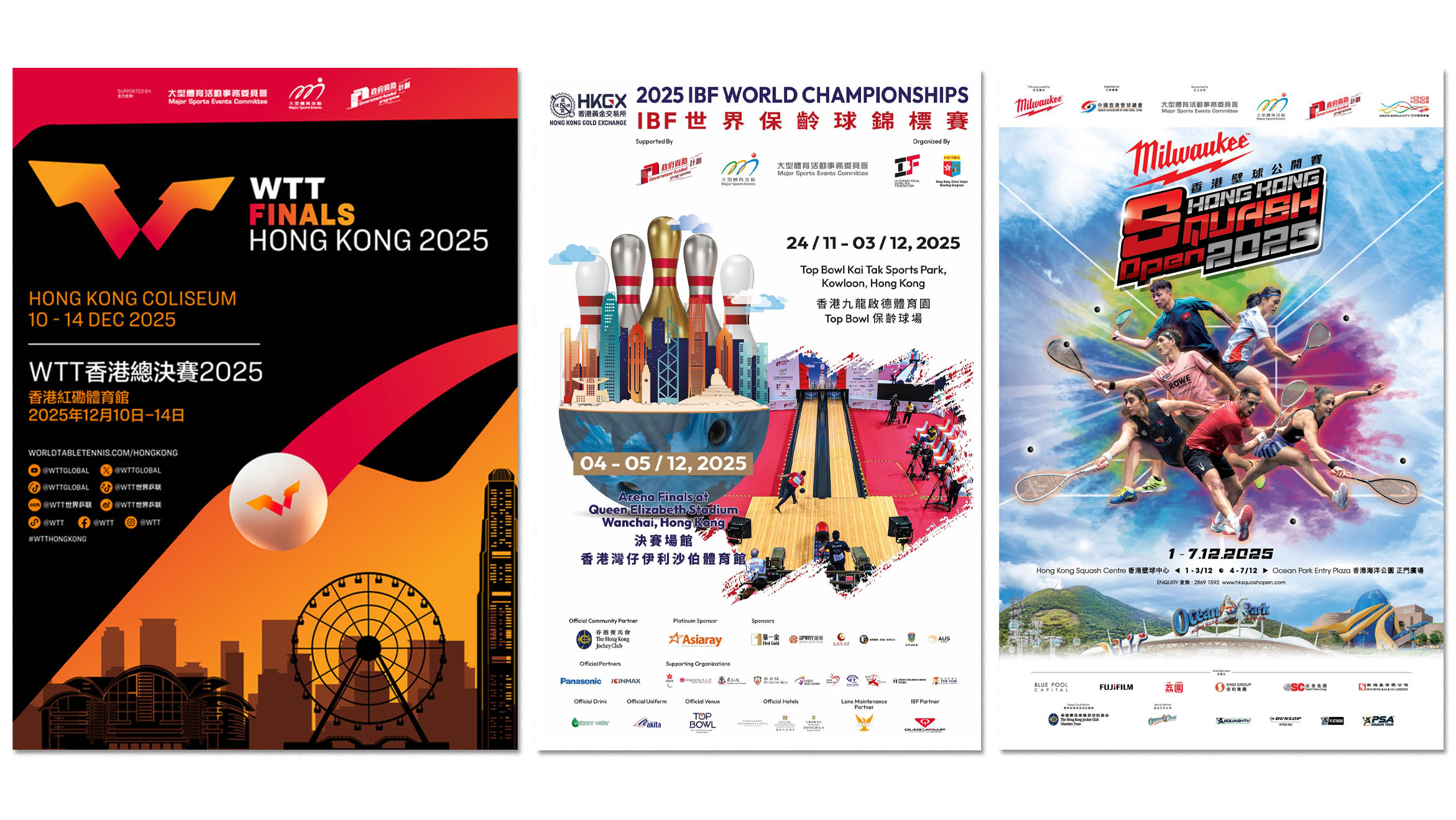 其中「HKGX 2025 IBF世界保齡球錦標賽」和「WTT香港總決賽2025」是首次在港舉辦;「二○二五 Milwaukee香港壁球公開賽」就會在香港海洋公園正門廣場舉行半準決賽及決賽。
