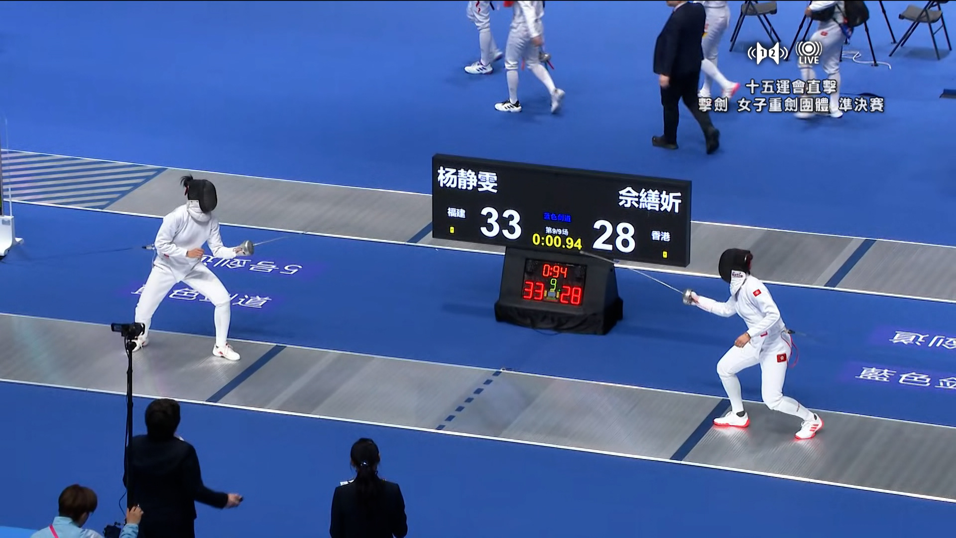 十五運會劍擊女子重劍團體賽四強,港隊28:33不敵福建隊,稍後將出戰銅牌賽,對手是北京隊。