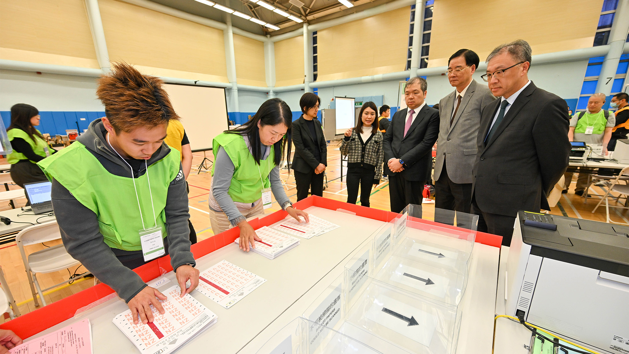 至於負責選舉委員會界別選舉點票工作,選舉事務處有向工作人員簡介選委會界別的點票工作流程等,示範點票機及相關系統操作。