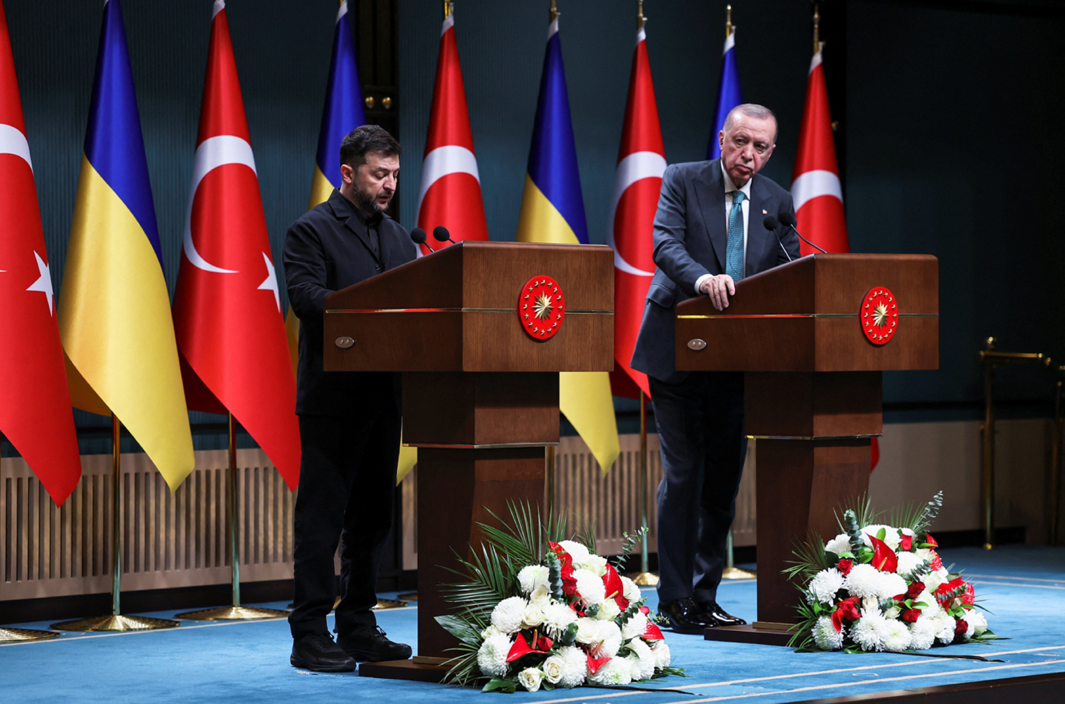 在會晤結束後的聯合記者會上,埃爾多安表示,土耳其主張以務實及注重結果的方式,繼續伊斯坦布爾談判進程,之前三輪談判標誌著俄烏雙方朝著潛在解決方案邁入一個重要階段,土耳其期盼各方代表對重啟這個進程採取建設性態度。他又說針對能源基礎設施的襲擊不斷增加,造成的生命損失正在給俄烏雙方帶來無法彌補的破壞,這是土耳其提議重啟伊斯坦布爾談判的主要原因。