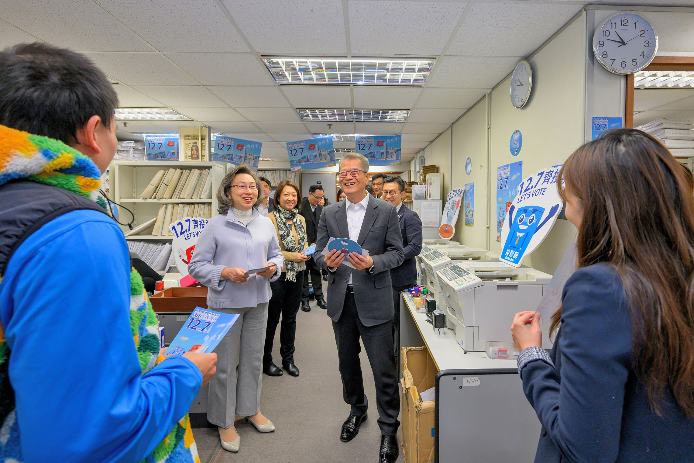 財政司司長陳茂波、律政司司長林定國及公務員事務局局長楊何蓓茵,到訪灣仔政府辦公室宣傳,呼籲公務員在立法會選舉齊投票。