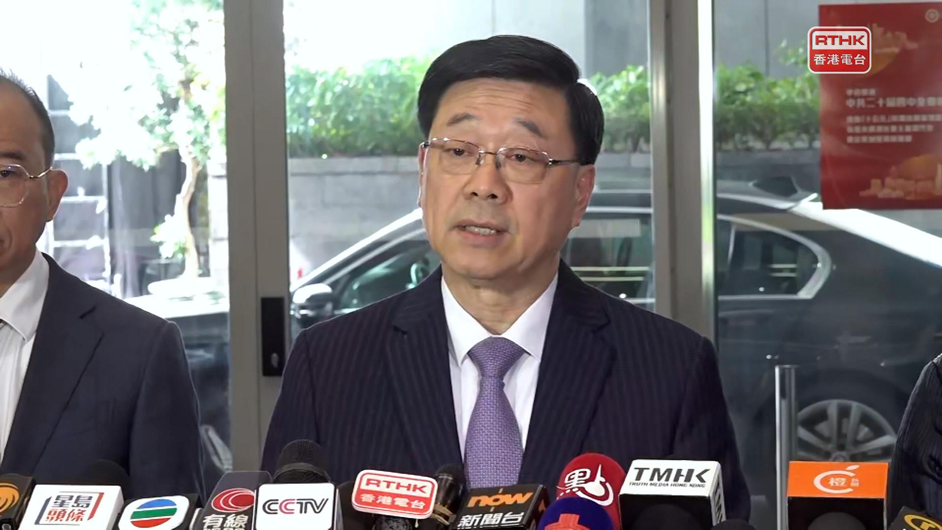 行政長官李家超表示,特區政府早上舉行首場四中全會精神宣講會,由中央宣講團成員,中國科學院院長、黨組書記侯建國和中央財經委員會辦公室副主任、中央農村工作領導小組辦公室副主任祝衛東來港負責宣講。他感謝中央對香港的高度重視及支持,約有500人出席宣講會,包括特區政府官員、行會成員、立法會議員及司法界代表等。