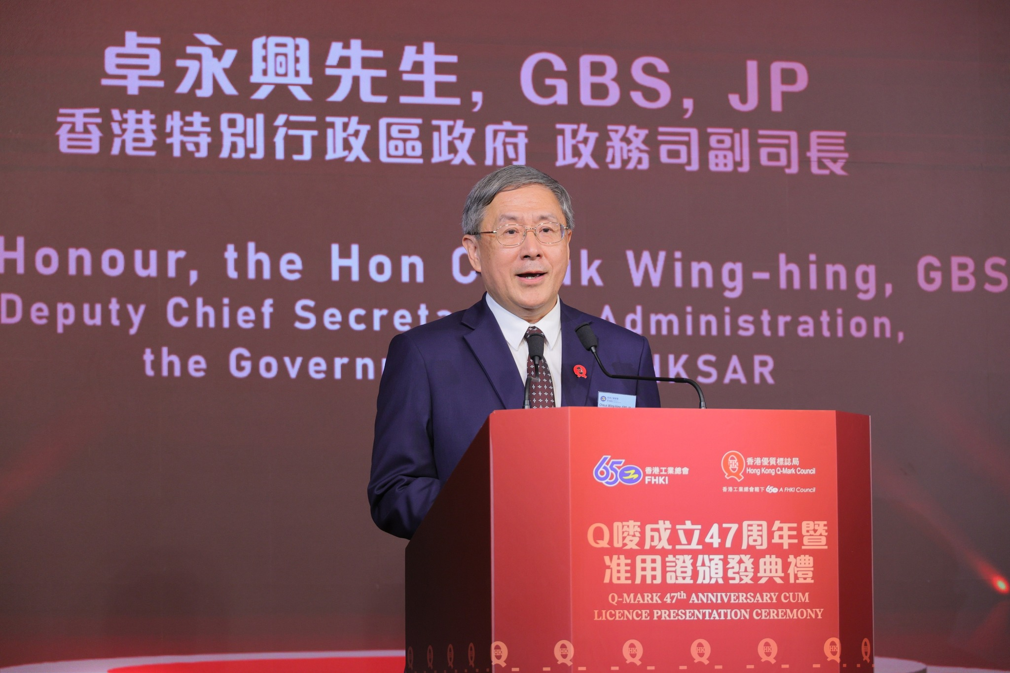 卓永興出席「Q嘜」成立47周年活動致辭時又說,由他擔任組長的政府「銀髮經濟工作組」積極應對高齡化帶來的各種挑戰,同時亦抓緊發展機遇,當局在推廣「銀色品質保證」方面的工作,包括由政府聯同工總制訂為銀色產品而設的「Q嘜」,以及與業界進一步研究更多銀色產品的「灣區標準」。