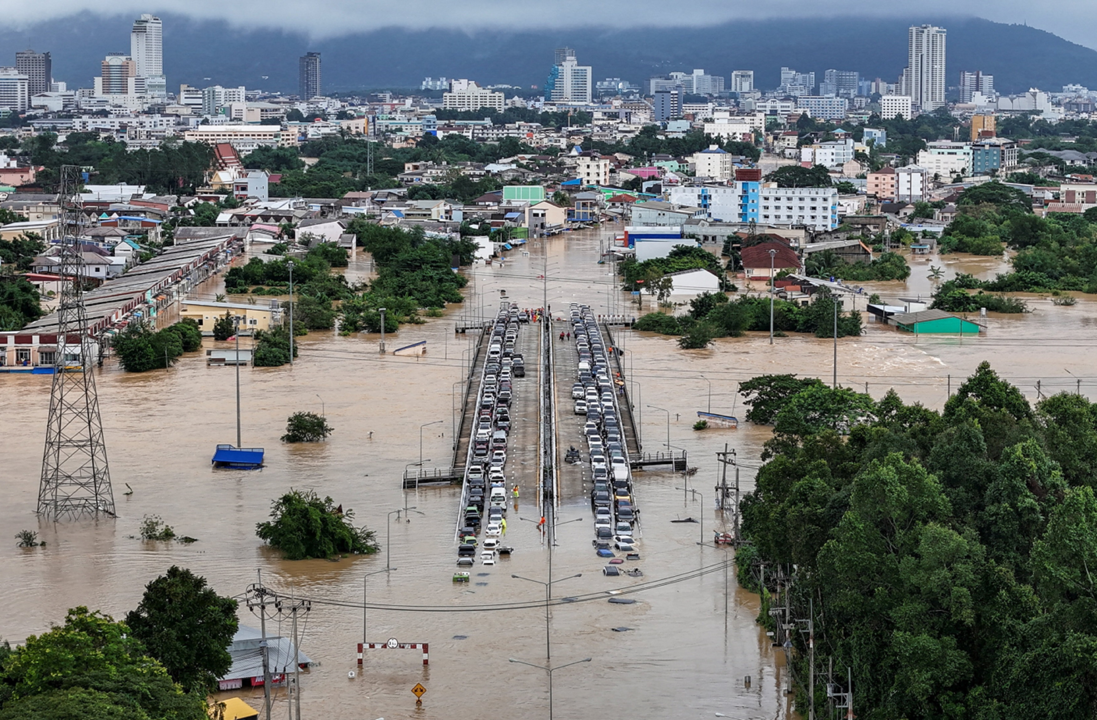 泰國暴雨連場,南部宋卡府受災最嚴重,政府已宣布當地進入緊急狀態,海軍派遣航空母艦參與救災。