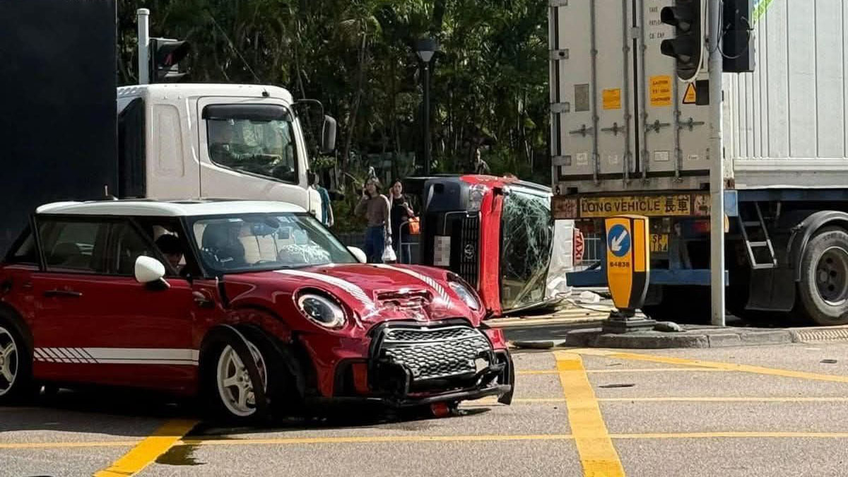 事發在早上10時許,私家車女司機在偉業街撞到一輛正在行駛的的士,的士翻側,再波及另一輛的士。一度被困的的士司機報稱頸痛、腳等受傷,而另一名的士司機面部受傷,分別送院治理。私家車女司機沒有受傷。