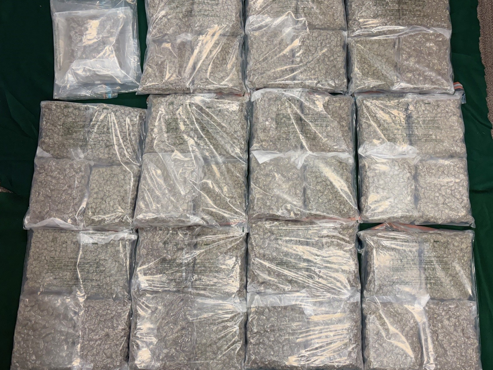 海關檢獲約25公斤、市值約510萬元的懷疑大麻花。(政府新聞處)