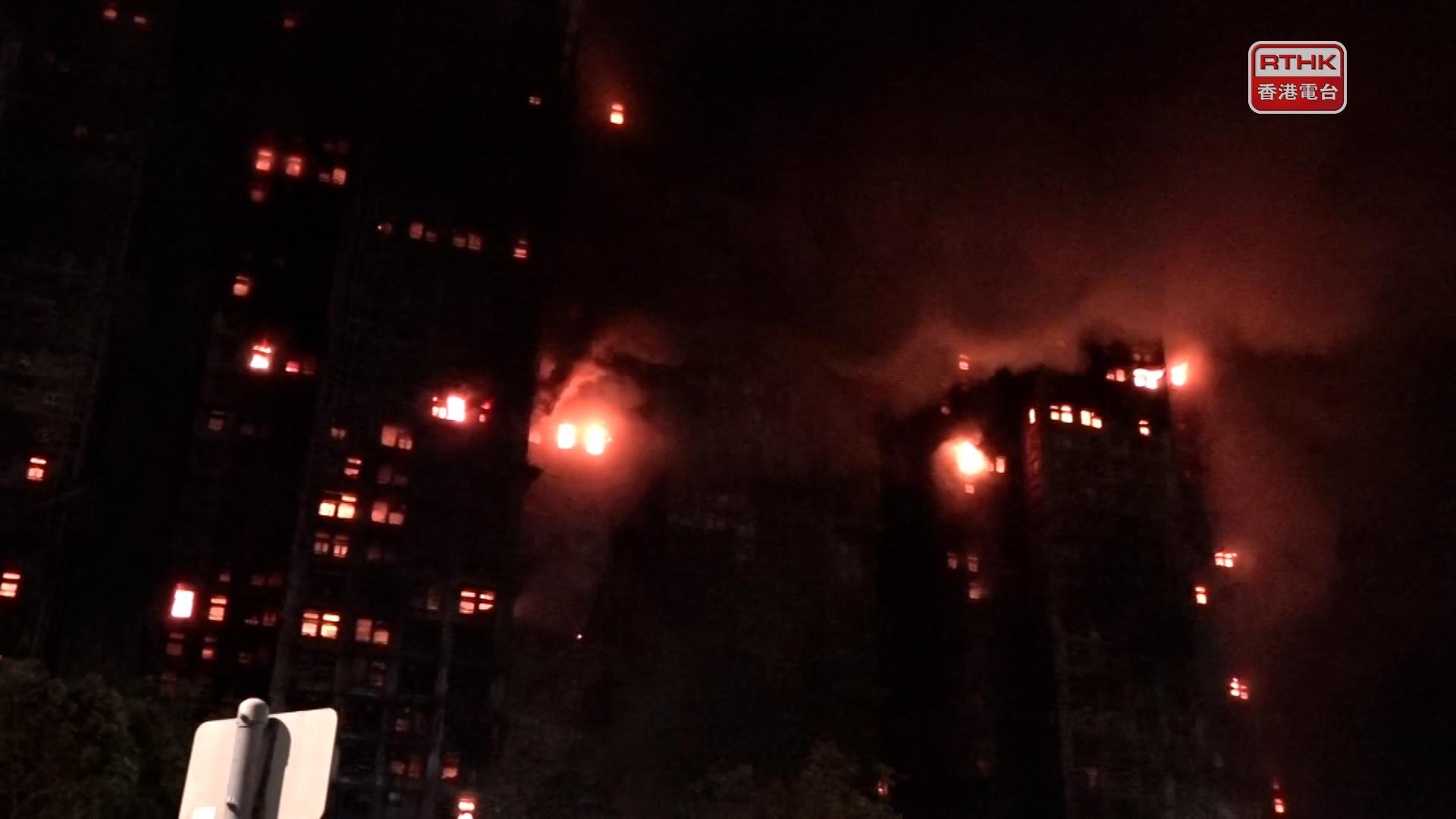 他表示,有三座大廈,消防已去到10幾樓的位置,滅火隊伍和搜救隊伍同步攻上,預計可能需要到中午,甚至黃昏時間,才可以去到天台位置,但後梯一些位置沒那麼大煙,搜救隊會快速搜救,之前收到求助個案的單位,例如拯救被困人士,在其中一座大廈的天台位置,將兩名生還者帶下來。
