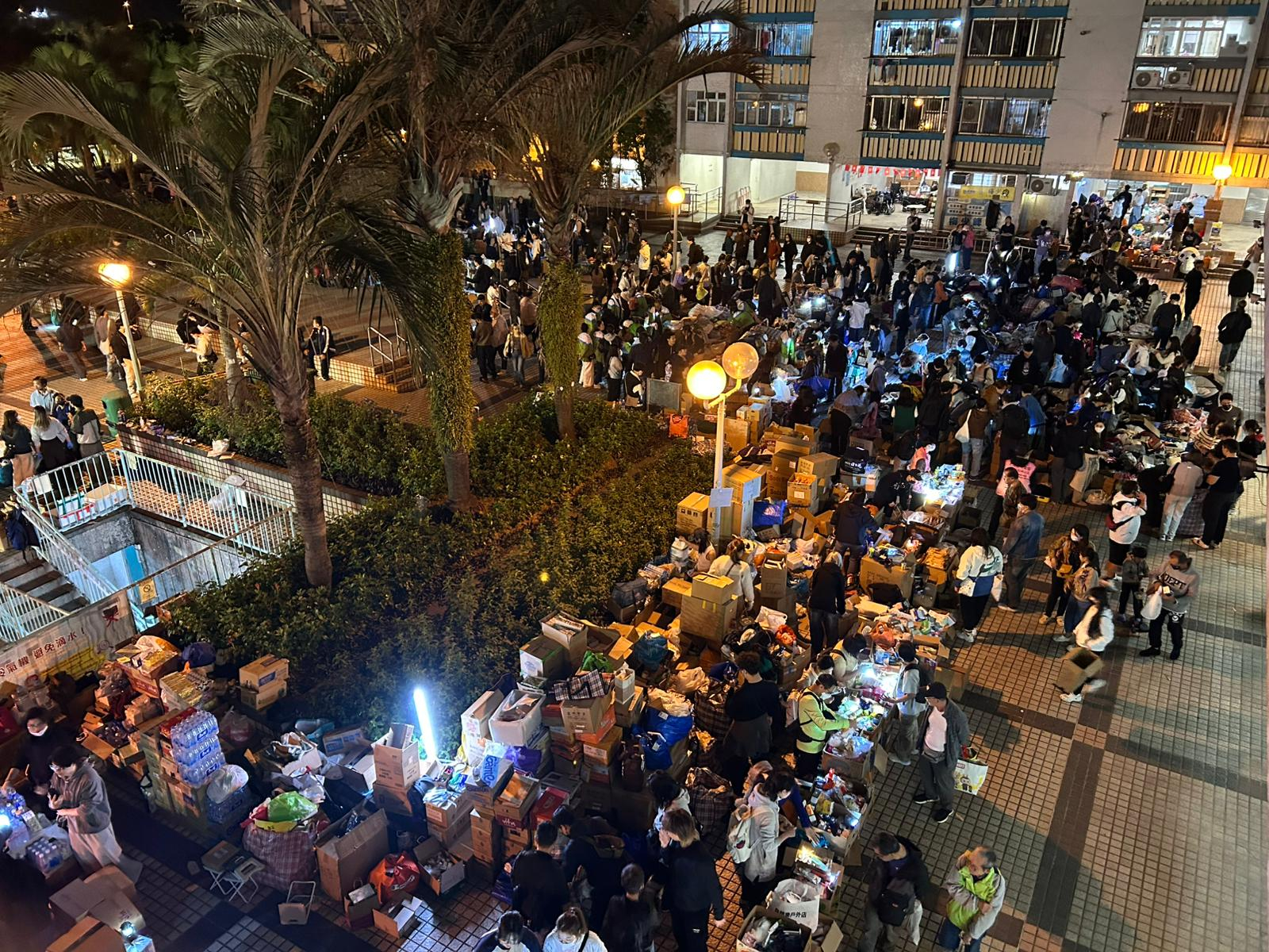 不少市民自發到廣福邨的平台協助分發物資,將不同團體和人士捐贈的食物、日用品、衣物等,派發給有需要的災民。有市民表示,希望盡一點綿力,發揮香港人守望相助的精神。