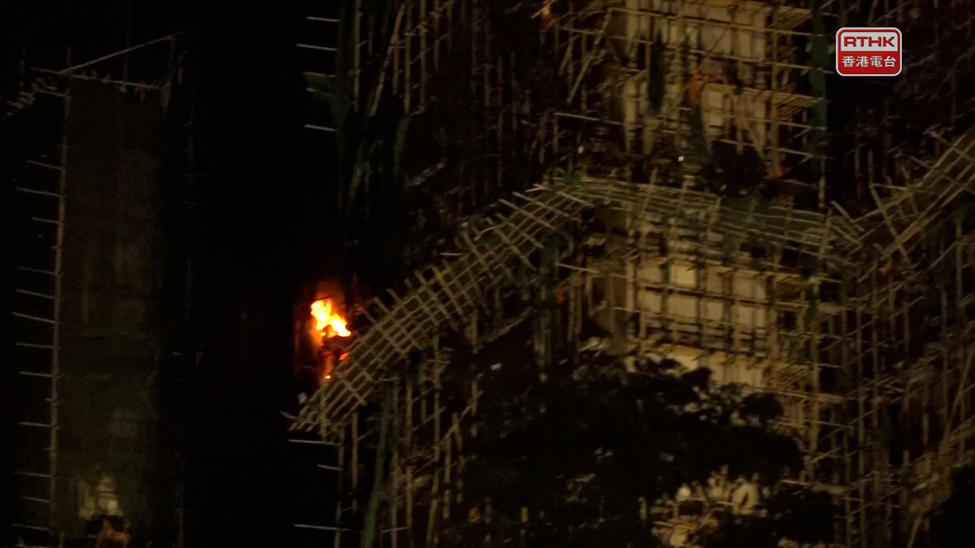 消防繼續在火場灌救,有樓宇部分高層單位深夜時火勢再次加劇,其餘樓宇已大致受控。消防人員晚上進入大廈中層部份已經熄火的單位,用電筒照明搜索。