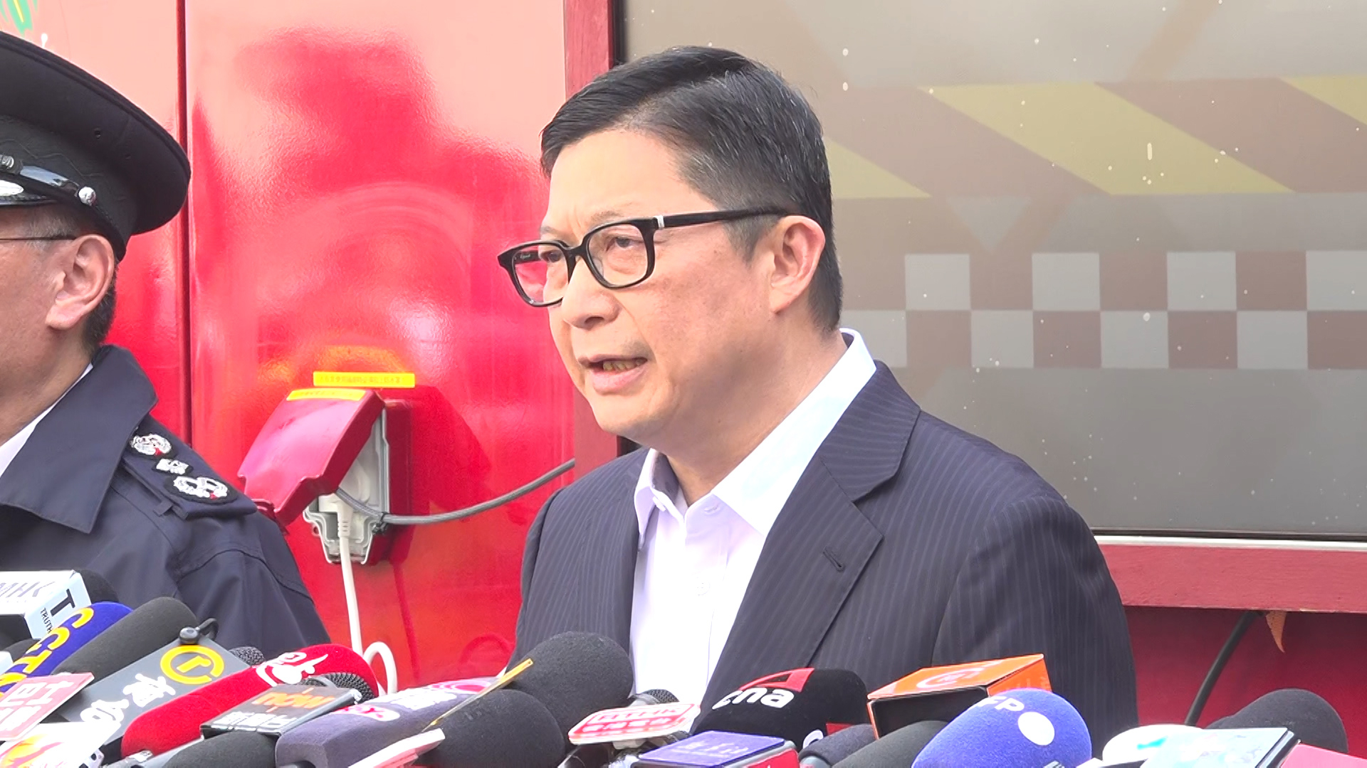 鄧炳強表示,火警造成至少128人死亡,不排除稍後死亡人數會增加。(郭志強攝)