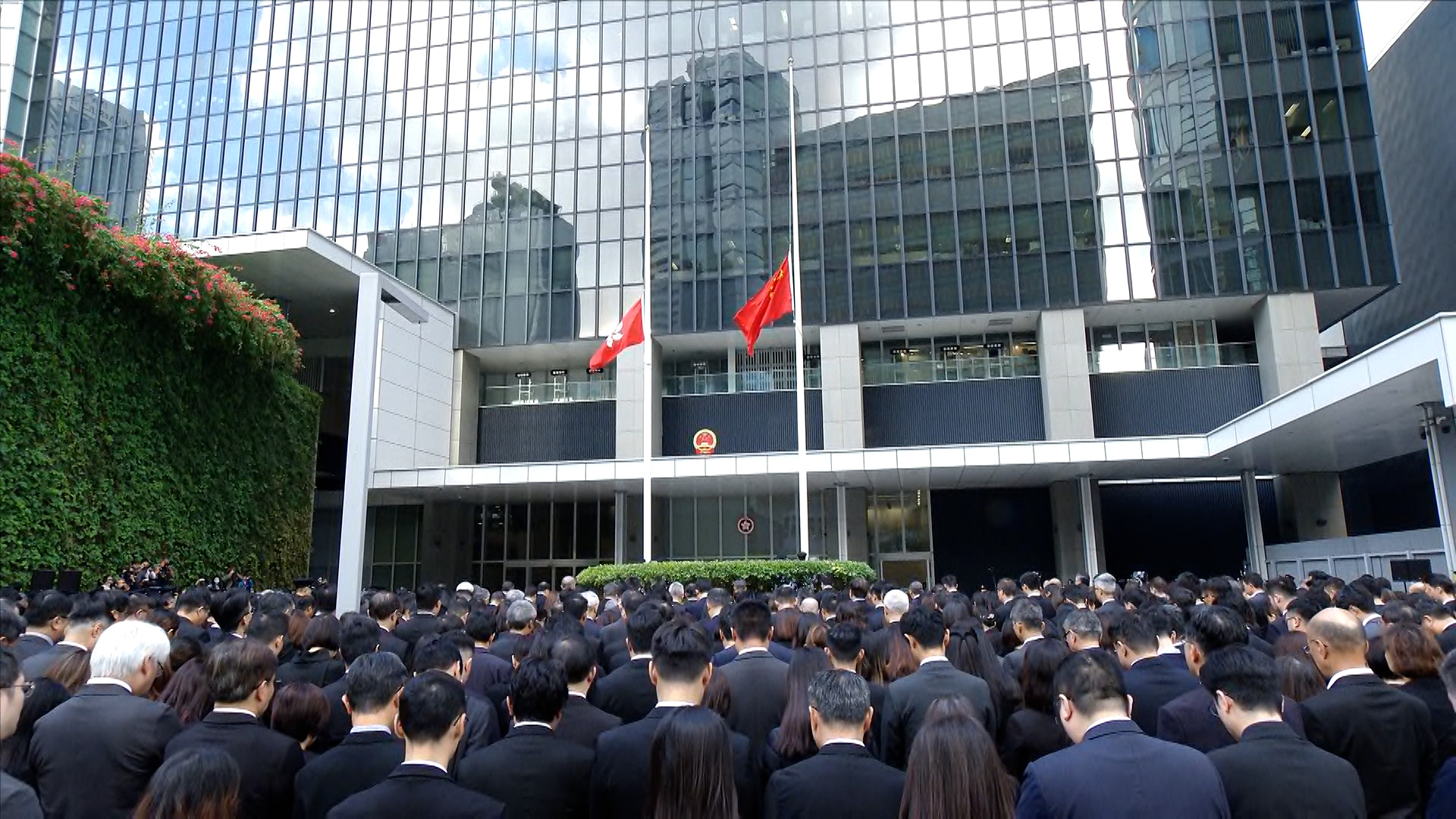 早上約7時半,參加默哀的人士陸續到場,面向政府總部肅立。近早上8時,排在前列的李家超與其他人士,包括農融、徐啟方、周霽、三名司長陳國基、陳茂波及林定國等進場。