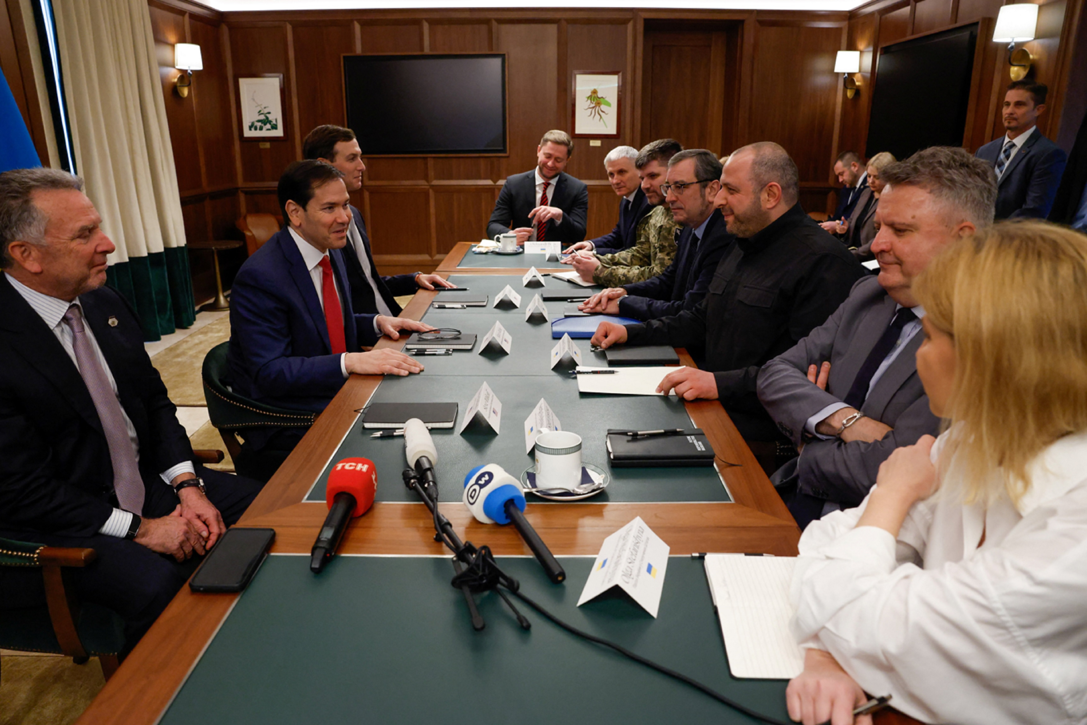 烏克蘭國家安全與國防委員會秘書、烏方代表團團長烏梅羅夫感謝美國及美方官員,又說美國聽到烏克蘭的聲音,美國支持烏克蘭,與烏方並肩同行。代表團成員、烏克蘭外交部第一副部長克斯利齊亞就在社交平台留言,形容會談開局良好,氛圍融洽,有助取得潛在具進展的成果,又讚揚魯比奧有卓越領導能力。