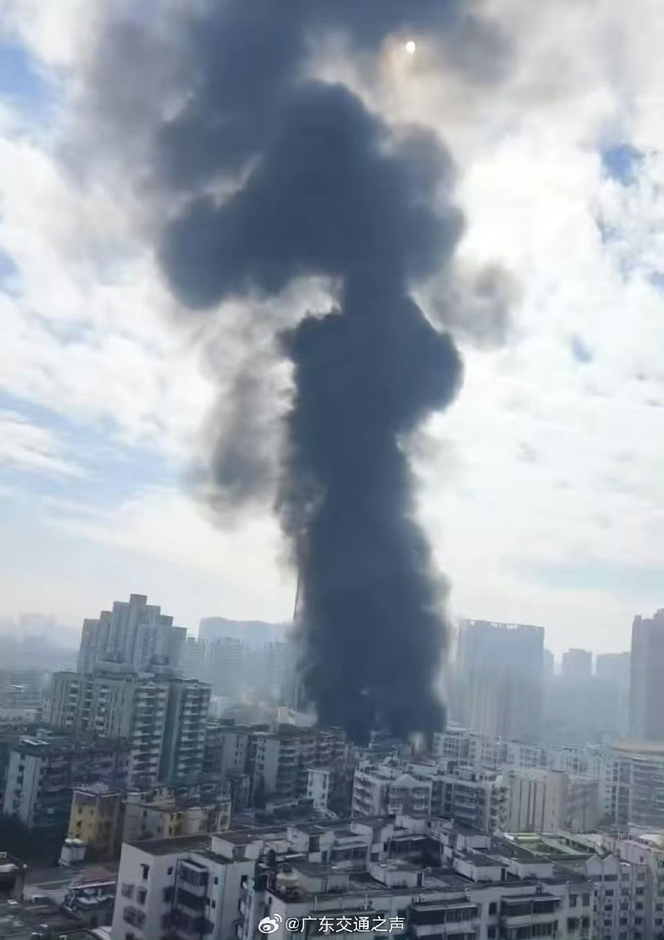 網上片段所見,火勢一度相當猛烈,不斷冒出黑煙。(「廣東交通之聲」微博)