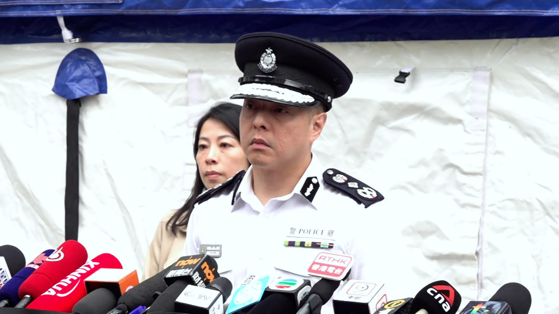 警務處處長周一鳴表示,警方已完成宏福苑七座大廈的搜索工作。(施華駿攝)