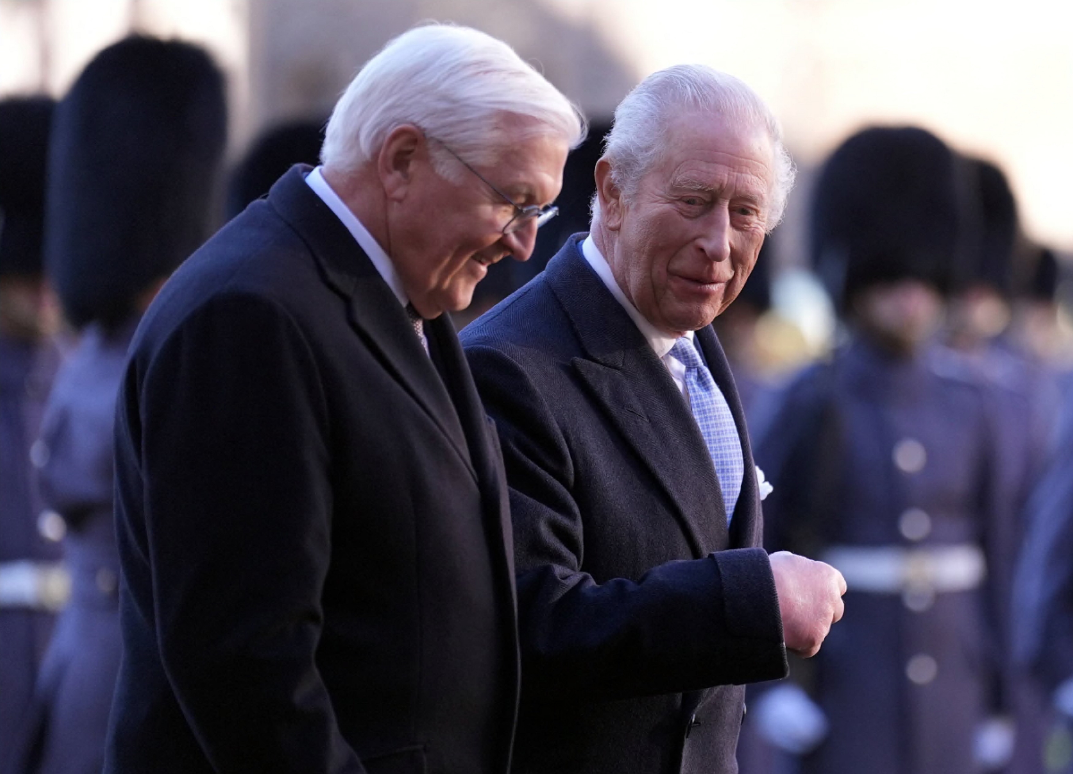 查理斯三世(右)熱烈歡迎國事訪英的施泰因邁爾(左)。(路透社)
