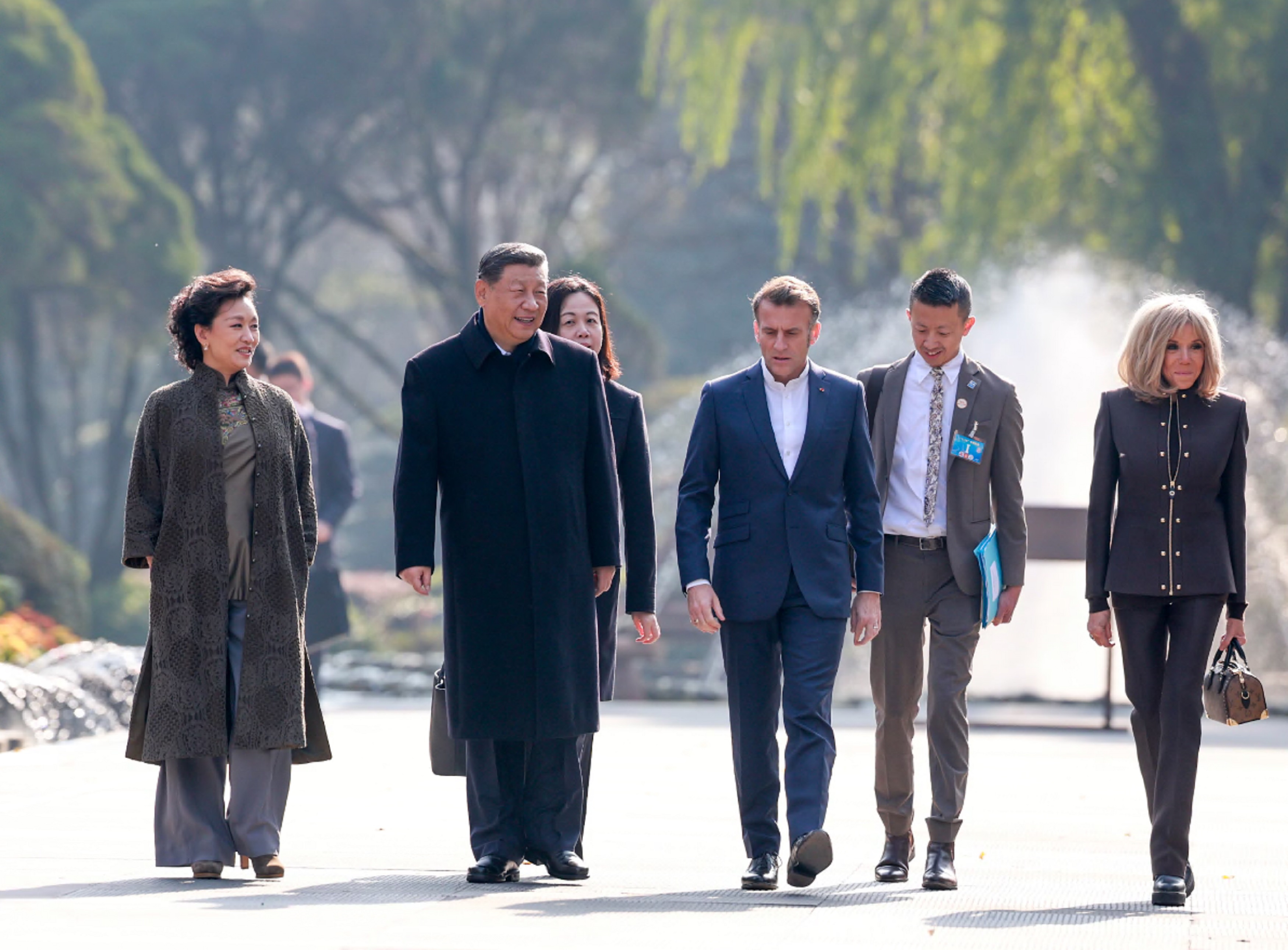 習近平今日在成都都江堰與馬克龍進行友好交流。習近平表示面對變亂交織的國際形勢,相信中法兩個歷史文化大國能透過對話合作,共同為世界和平穩定及人類發展進步,作出更大貢獻。馬克龍就說,法方願與中方加強溝通協調,堅持透過對話協商解決衝突,攜手維護世界和平穩定。