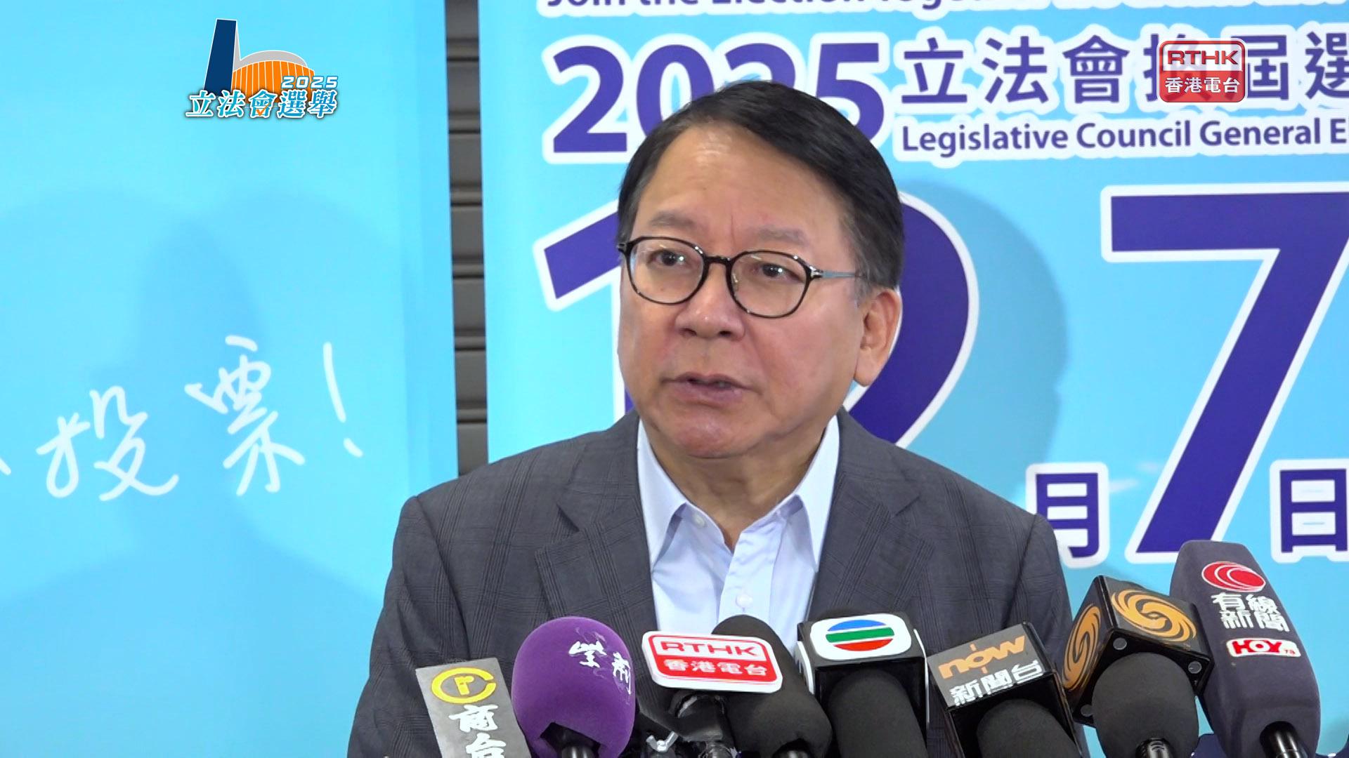 陳國基又指出,明白因為大埔宏福苑火災,市民仍然感到傷痛,但立法會對未來香港、政府將來施政都很重要,包括支援災民及救災,需要立法會配合及監督。他又說,根據過往經驗,晚上投票人流較多,呼籲選民早些到票站投票。