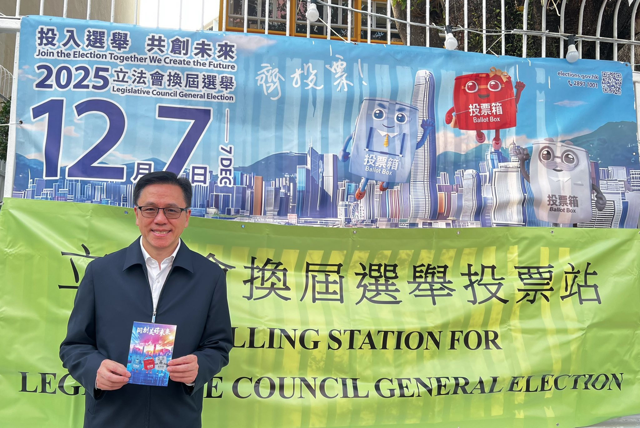 政制及內地事務局局長曾國衞早上到灣仔會展的選委會界別票站巡視,之後前往東區少年警訊會所投票站投票。他形容立法會選舉對香港,對行穩致遠、一國兩制,以至良政善治、由治及興,甚至對大埔火災善後工作亦非常重要,呼籲踴躍投票。
