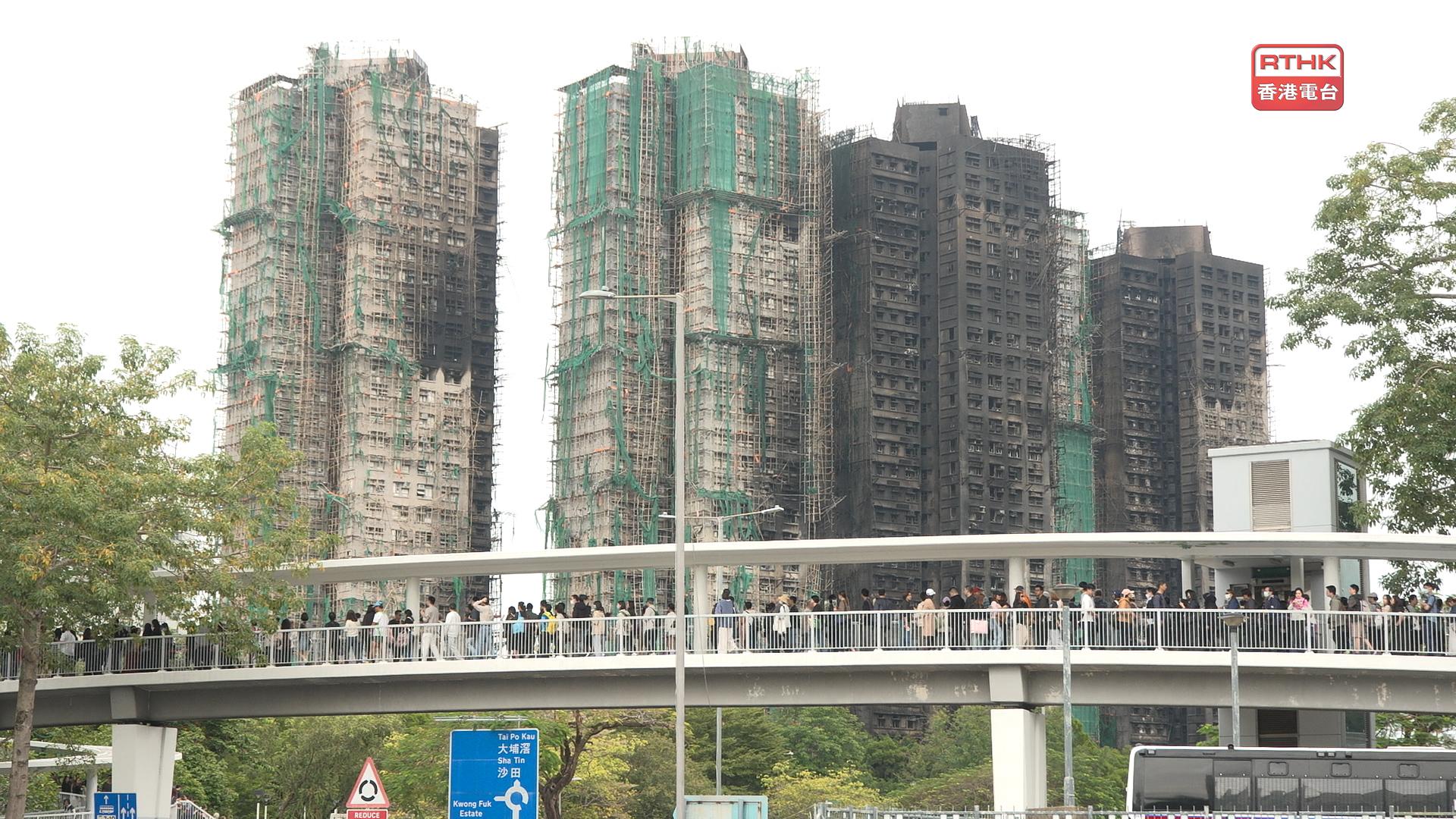警方已完成所有7幢大廈內部範圍的搜索工作。「災難遇害者辨認組」人員今日繼續在已確定安全的大廈外圍及倒塌棚架附近進行搜索,暫未有發現遺骸,死者數目維持159人。