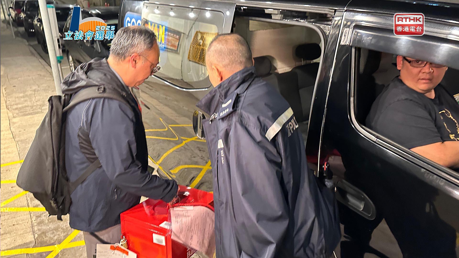 有工作人員運送功能界別票箱到會展進行點票。(仇志榮攝)