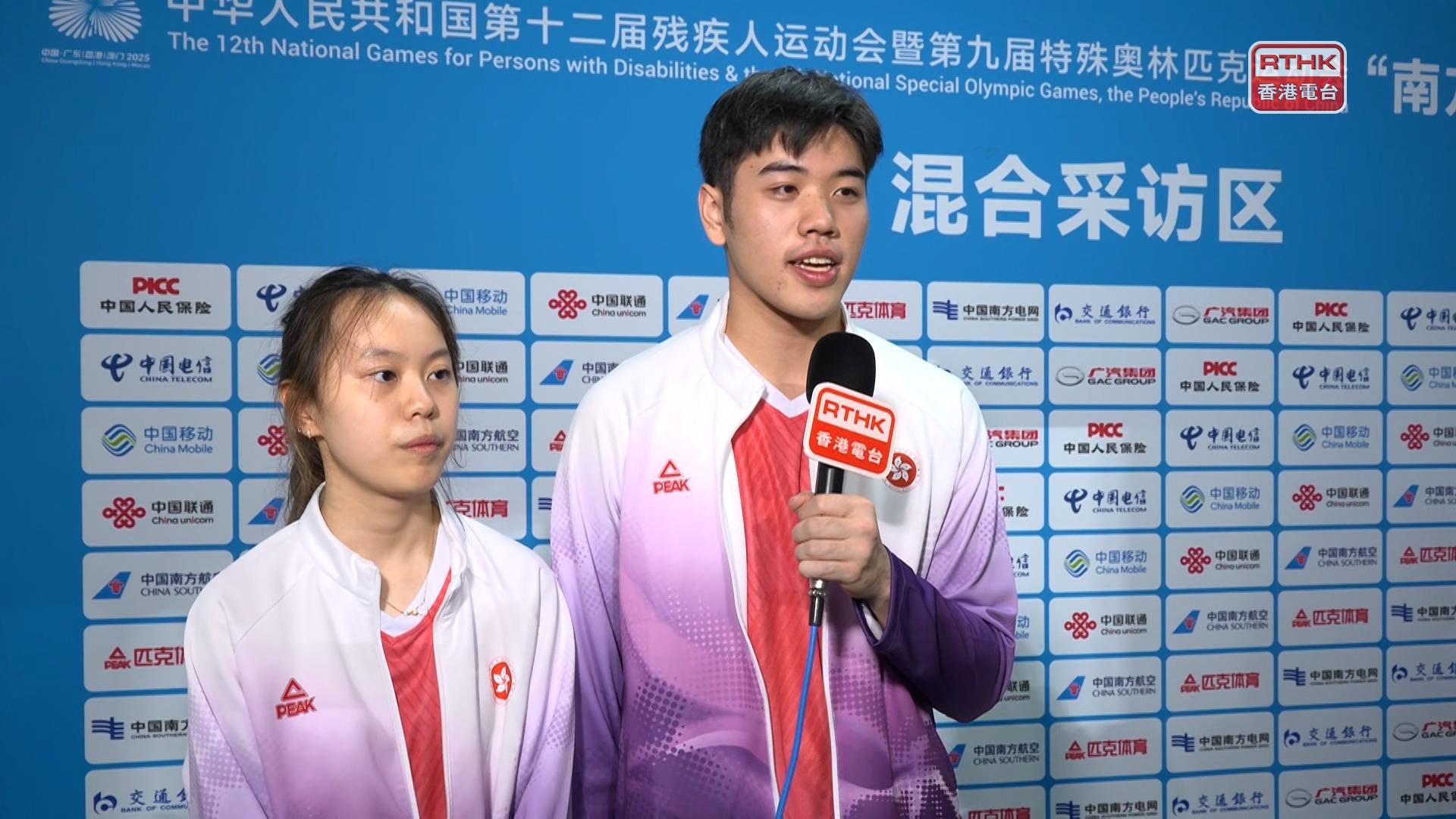 在廣州上演的殘特奧會殘運會乒乓賽,賽前被視為港隊「金牌希望」的XD14混雙拍檔黃翰林及彭穎加,在決賽局數3:2擊敗江蘇組合,取得港隊今屆殘運乒乓首金。