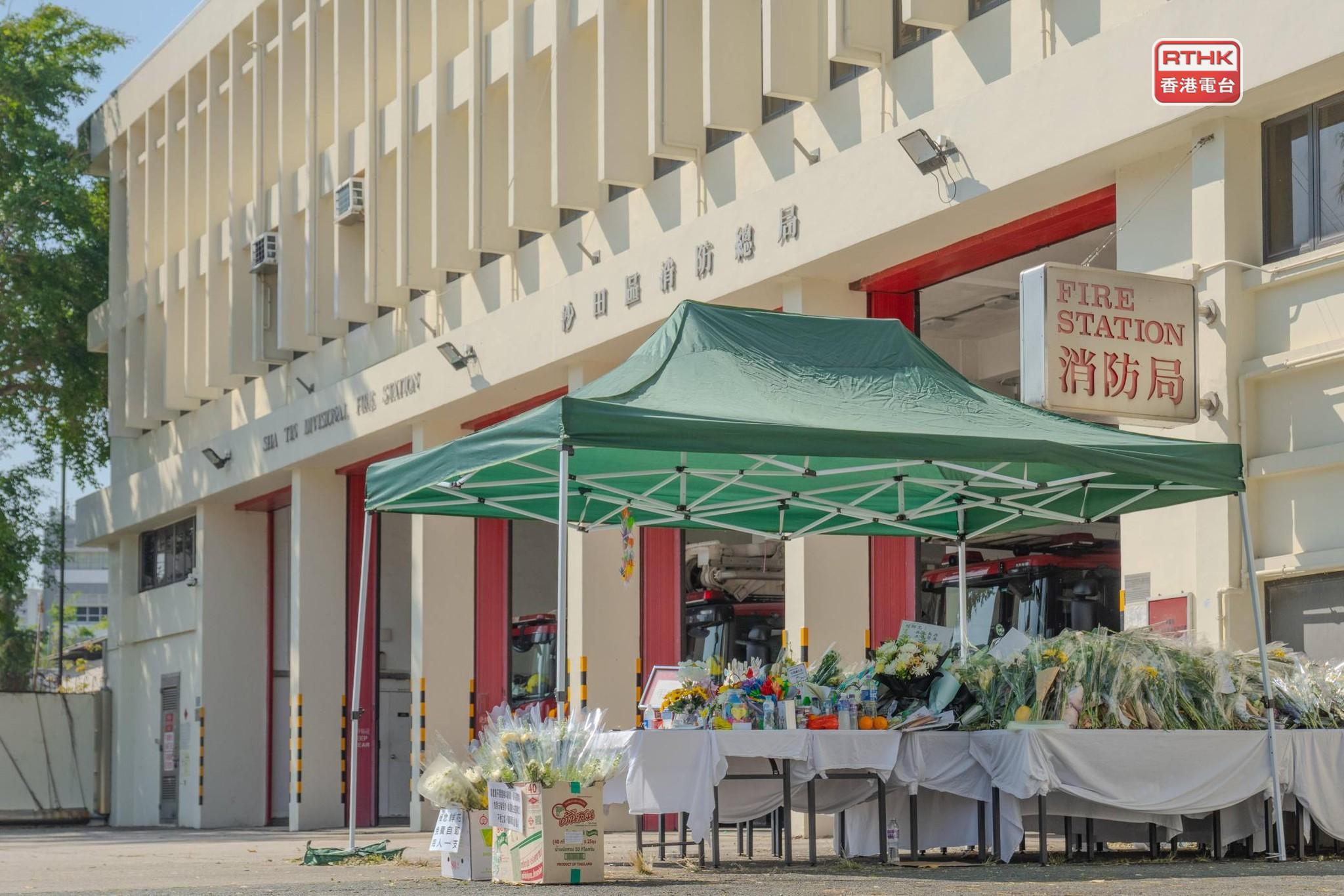 連日來有市民到沙田消防局獻花。(消防社交網站圖片)