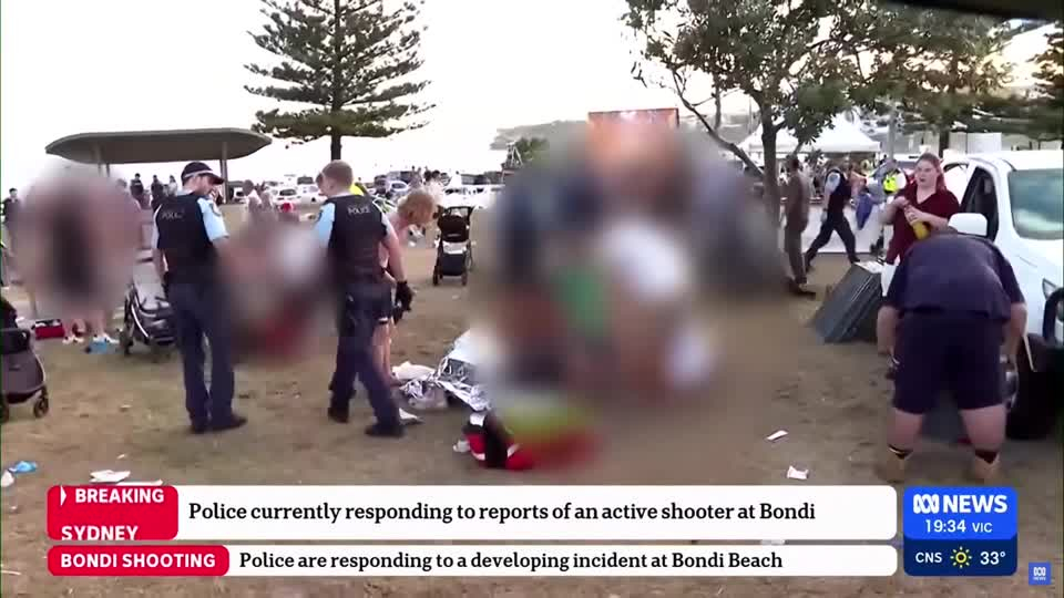 有社交平台流傳的影片顯示,海灘上的民眾聽到多聲槍響和警笛聲後逃跑。另一段影片顯示,兩名男子被身穿制服的警察按倒在地。