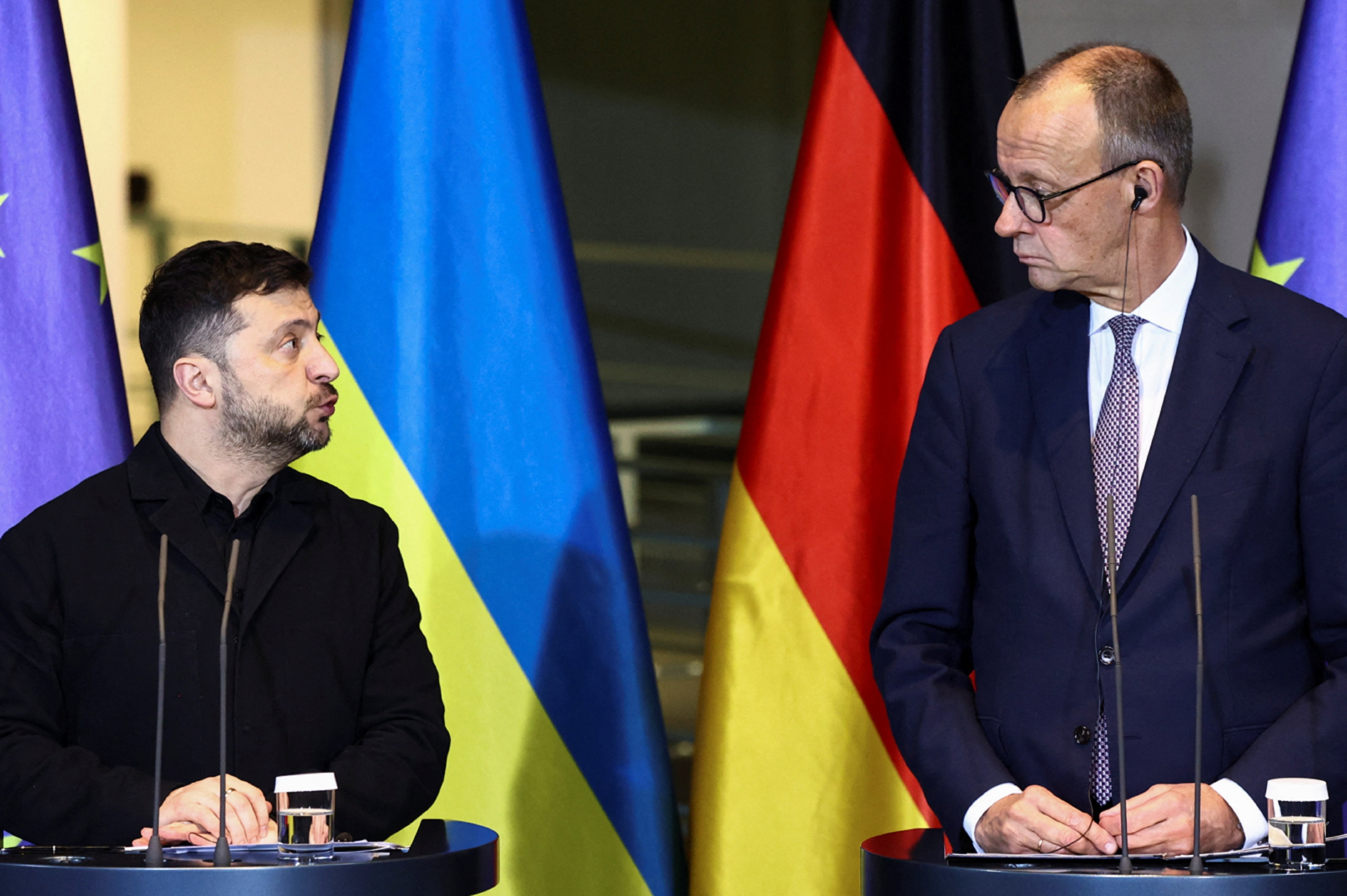 澤連斯基於當地星期一與德國總理默茨共同出席一個經濟論壇。澤連斯基在講話中指和平應該公正,烏克蘭的尊嚴很重要,又指烏美雙方在柏林的會談擁有充足時間,可以討論很多細節。默茨就在講話中說只有烏克蘭保持自由與擁有主權,才能在歐洲創造可持續的和平。