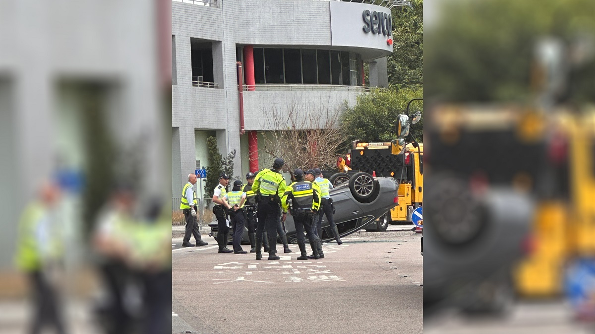 事發中午12時許,一輛私家車沿城隧由沙田往荃灣方向行駛,當駛至隧道荃灣出口時,私家車突然失控,撞向路中石壆,再衝向對面線、往沙田方向的行車線,全車翻轉,四輪朝天。56歲男司機由消防員救出。