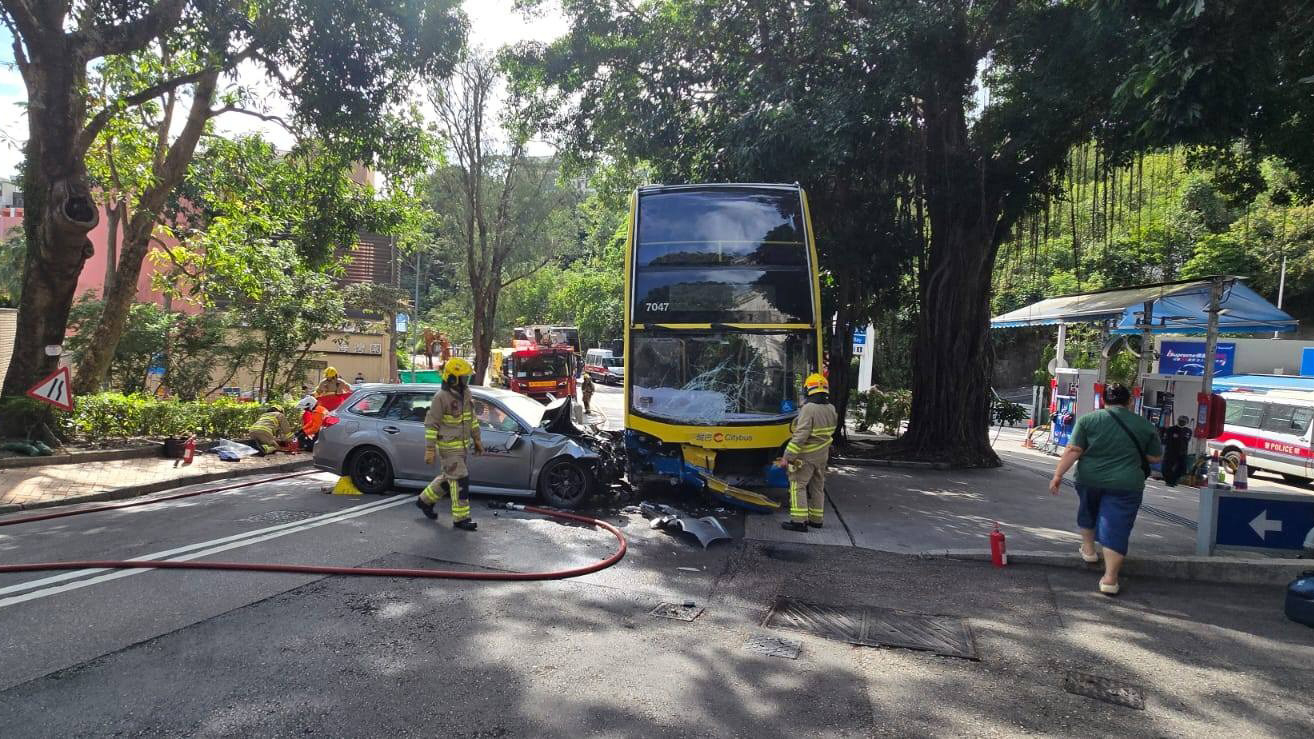 事發在中午12時許,一輛城巴6號線巴士沿赤柱村道行駛,駛至海灣園對出時,一輛私家車懷疑失控撞向巴士,巴士司機面部和手腳受傷,私家車司機頸部受傷,5名巴士乘客亦分別面、頸和手腳受傷。巴士及私家車車頭損毀。