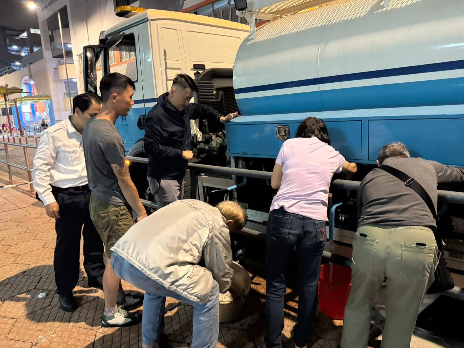 姚銘又表示,現時天平邨有3座樓宇已恢復食水供應,包括天賀樓、天祥樓和天怡樓,但仍有4座樓宇、安盛苑、天平商場及一些商戶仍然無食水。他說不少居民要到臨時取水點,取水準備今晚的冬至飯,傍晚時取水的居民較多,亦有居民要暫住親戚家中,另外有部分食肆因為無食水供應,生意因而受影響。