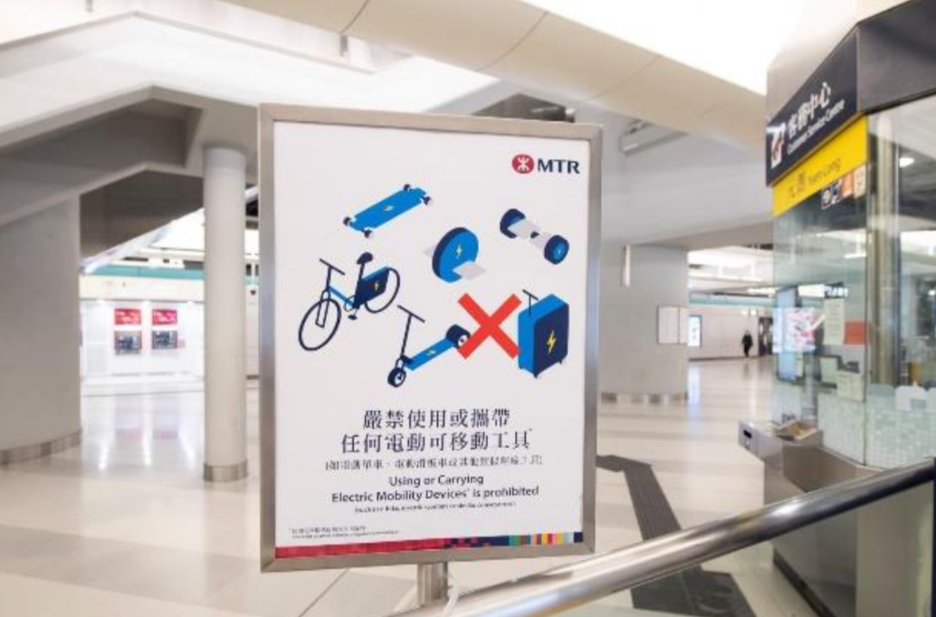 港鐵表示,明年1月1日起,禁止乘客攜帶電動可移動工具進入港鐵範圍。