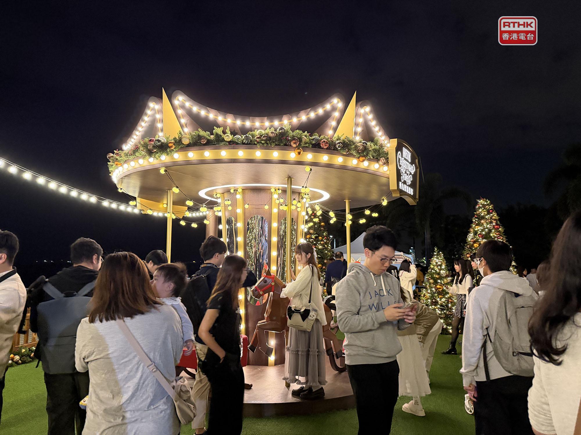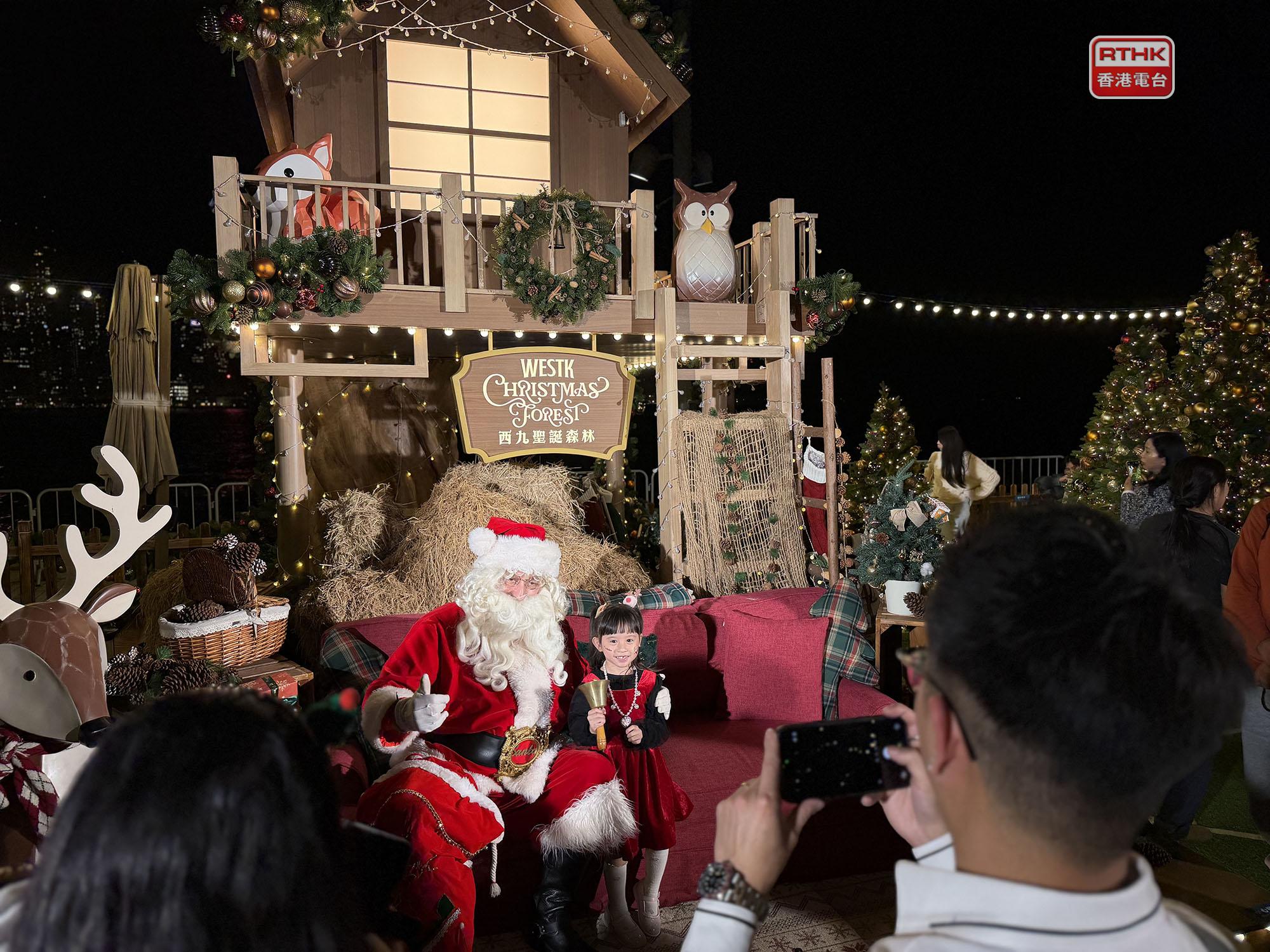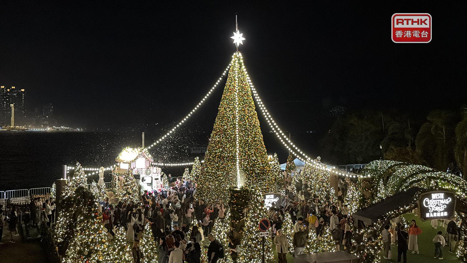 不少市民在平安夜外出慶祝,其中西九文化區的聖誕小鎮人頭湧湧,有市民帶同寵物打卡留念。有旅客表示會留港一星期,到不同地點感受節日氣氛。