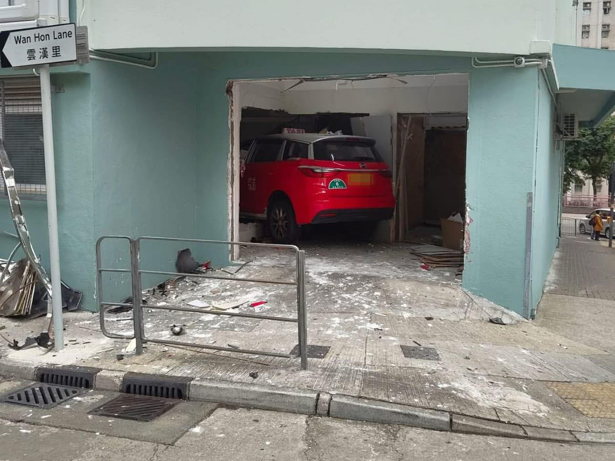 警方表示,上午約10時半接到途人報案,有一輛的士由雲漢街駛至協和街方向,途至雲漢里附近時懷疑失控剷上行人路,撞毀鐵杆,再撞入地利亞修女紀念學校門口位置。