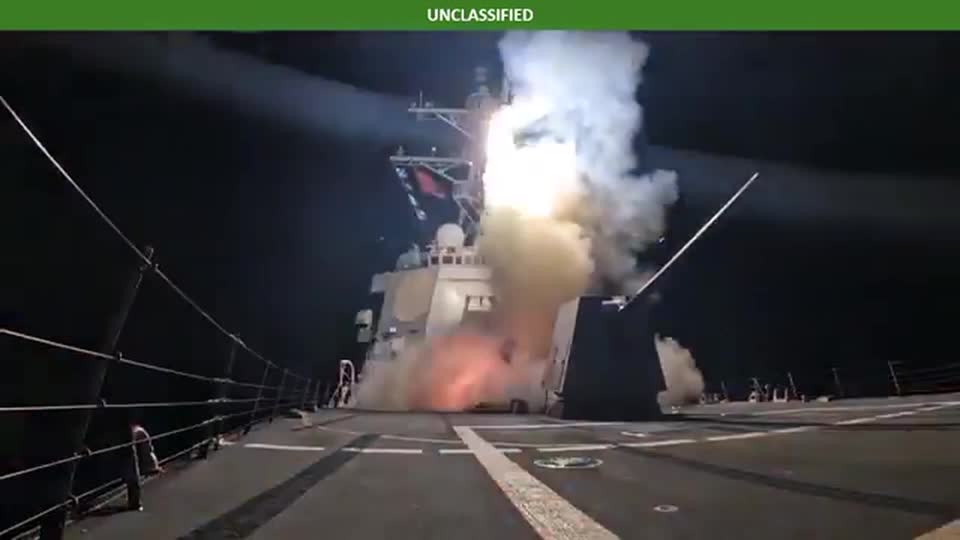 五角大廈發布影片顯示,至少有一枚砲彈從一艘軍艦上發射。