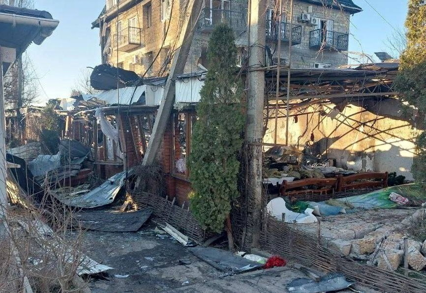 莫斯科任命的烏克蘭南部赫爾松州州長表示,敵人出動三架無人機襲擊當地一間咖啡店和酒店,當時過百名平民正在慶祝新年,襲擊導致一幢建築物被燒毀。俄方表示,襲擊造成20多人死亡,多人受傷,指責烏方發動恐怖襲擊,蓄意破壞尋求和平解決衝突的努力,警告基輔將面臨相應後果。