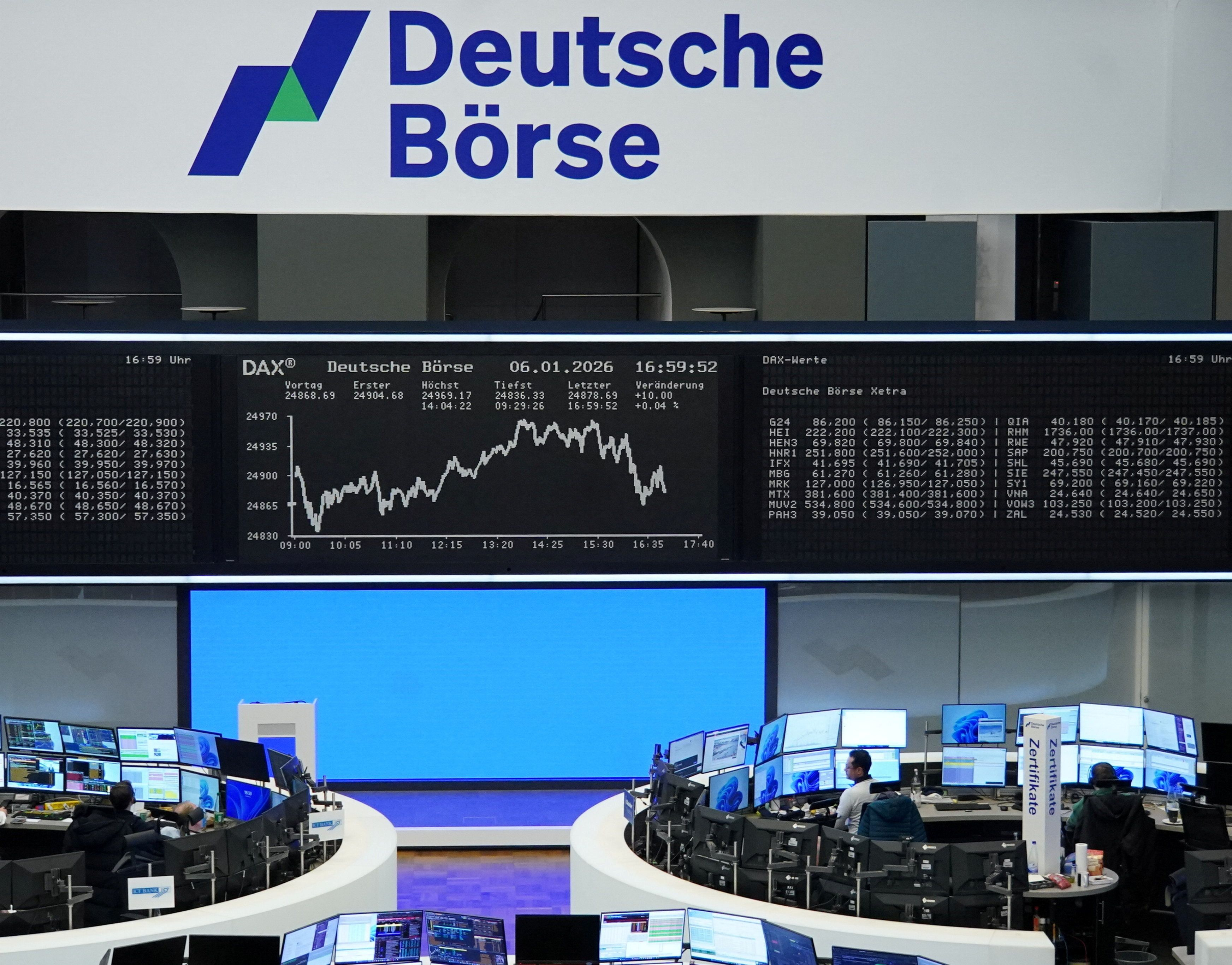 德國DAX指數連升6日,再創新高,日內高位迫近25000點關口,收市報24892點,升幅約0.1%。(路透社)