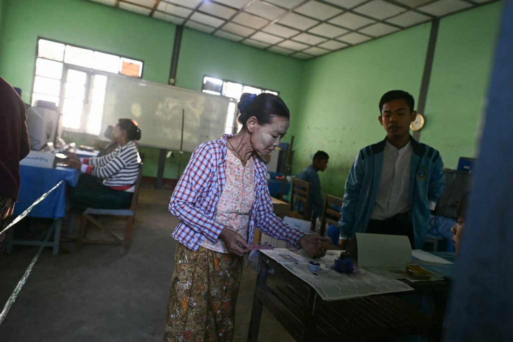 緬甸大選舉行第二階段投票,有選民到票站投票。(法新社)