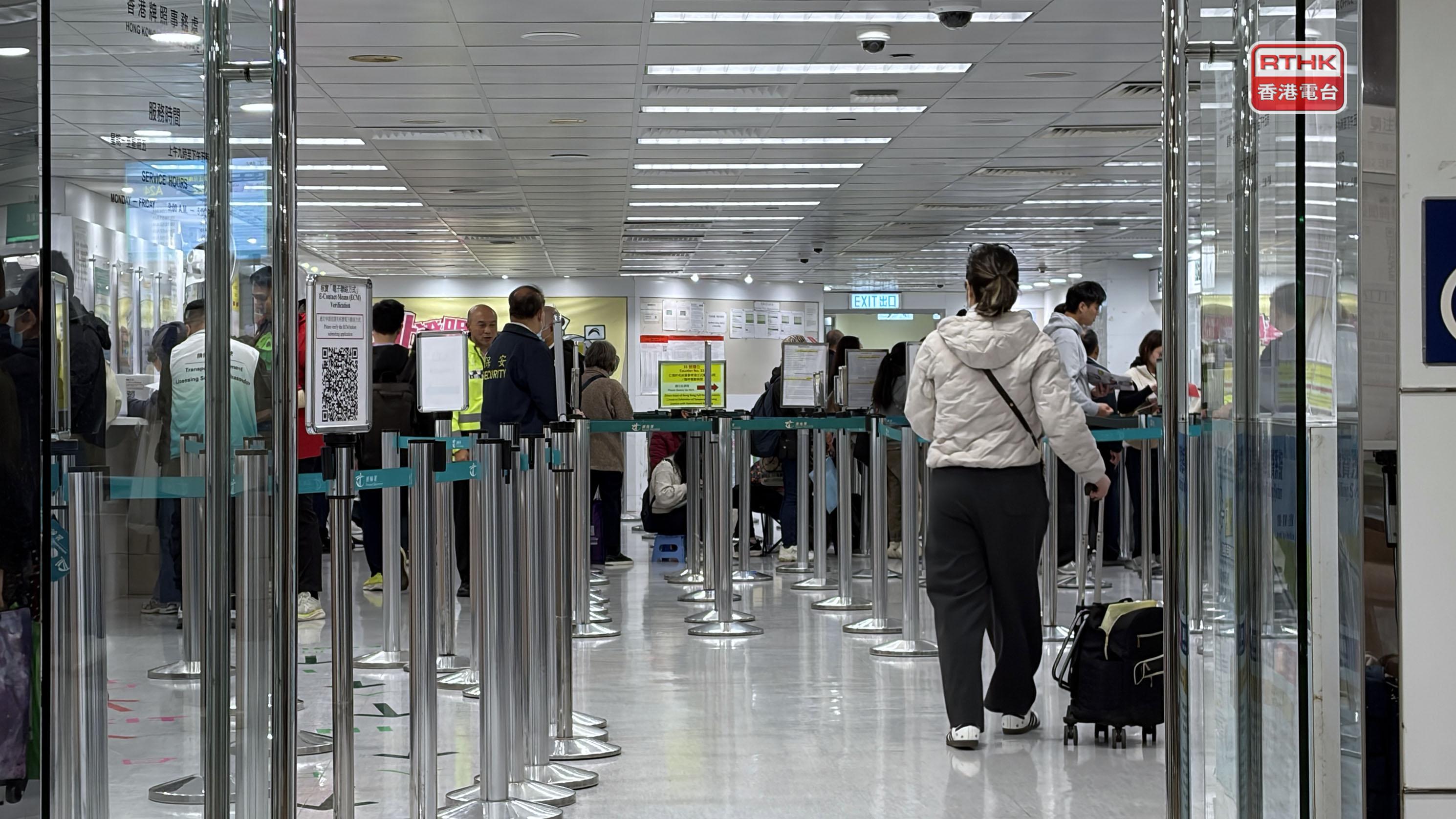 位於金鐘統一中心的運輸署香港牌照事務處,今日起就申請免試簽發香港正式駕駛執照實施「電子即日籌」安排,每日300個名額。運輸署助理署長李美鳳在本台節目《千禧年代》說,相關系統今早7時開始運作,至今運作順利正常,300個籌全部派完,而香港牌照事務處今早9時起辦公,運作暢順成功,沒有任何奇怪情況,但有少數公眾到場嘗試取籌,已經張貼告示和加派人手解釋。