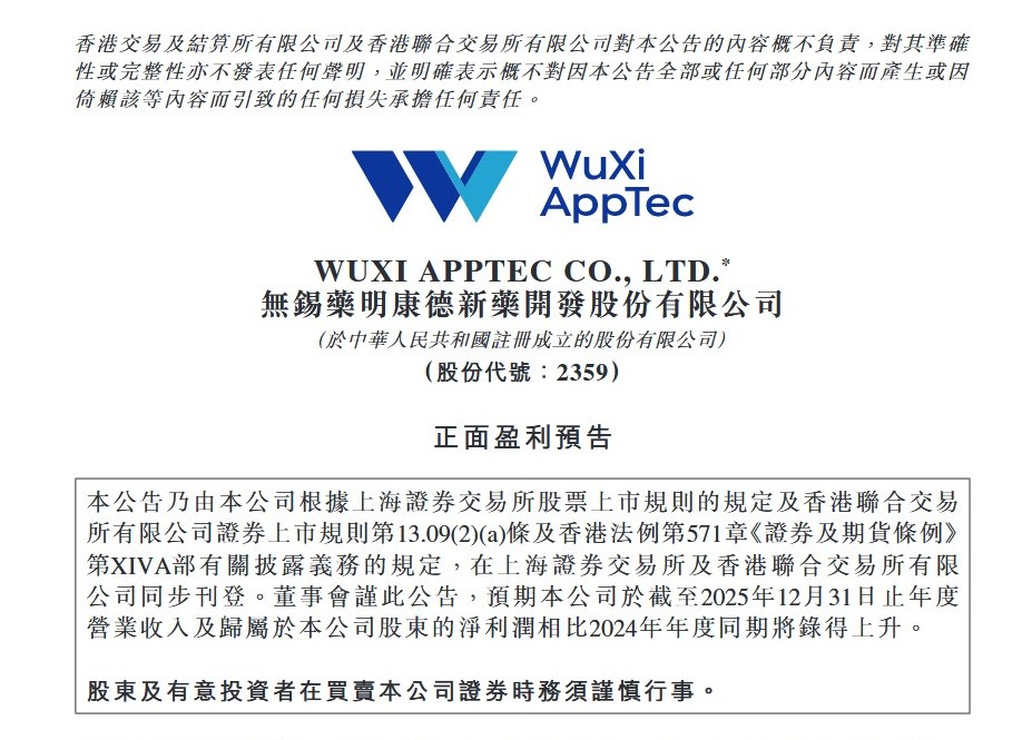 藥明康德發盈喜,預期去年盈利約191.5億元人民幣,按年升約1.03倍,當中包括出售聯營公司部分股權以及剝離部分業務獲得的投資收益。